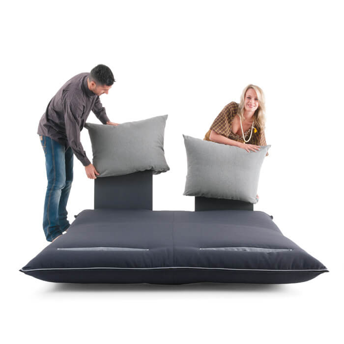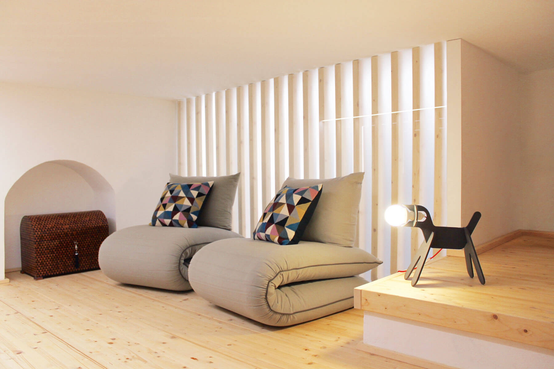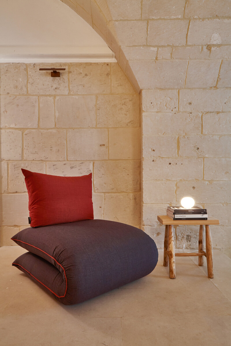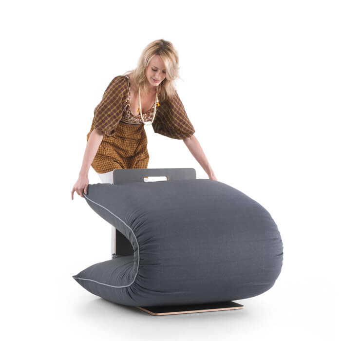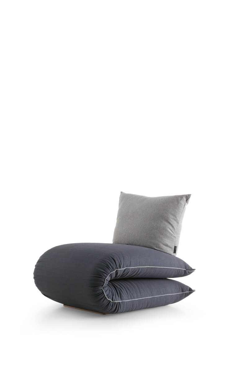 Chama 从蒲团和枕头中恢复生机。床垫可以折叠或展开,具体取决于您想如何改造这款蒲团椅。Chama 可以变成单人床、双人床或舒适的地上躺椅。一个舒适而实用的解决方案,用于装饰环境并为客人提供一张加床。