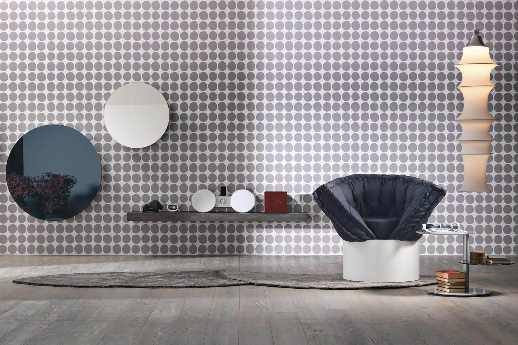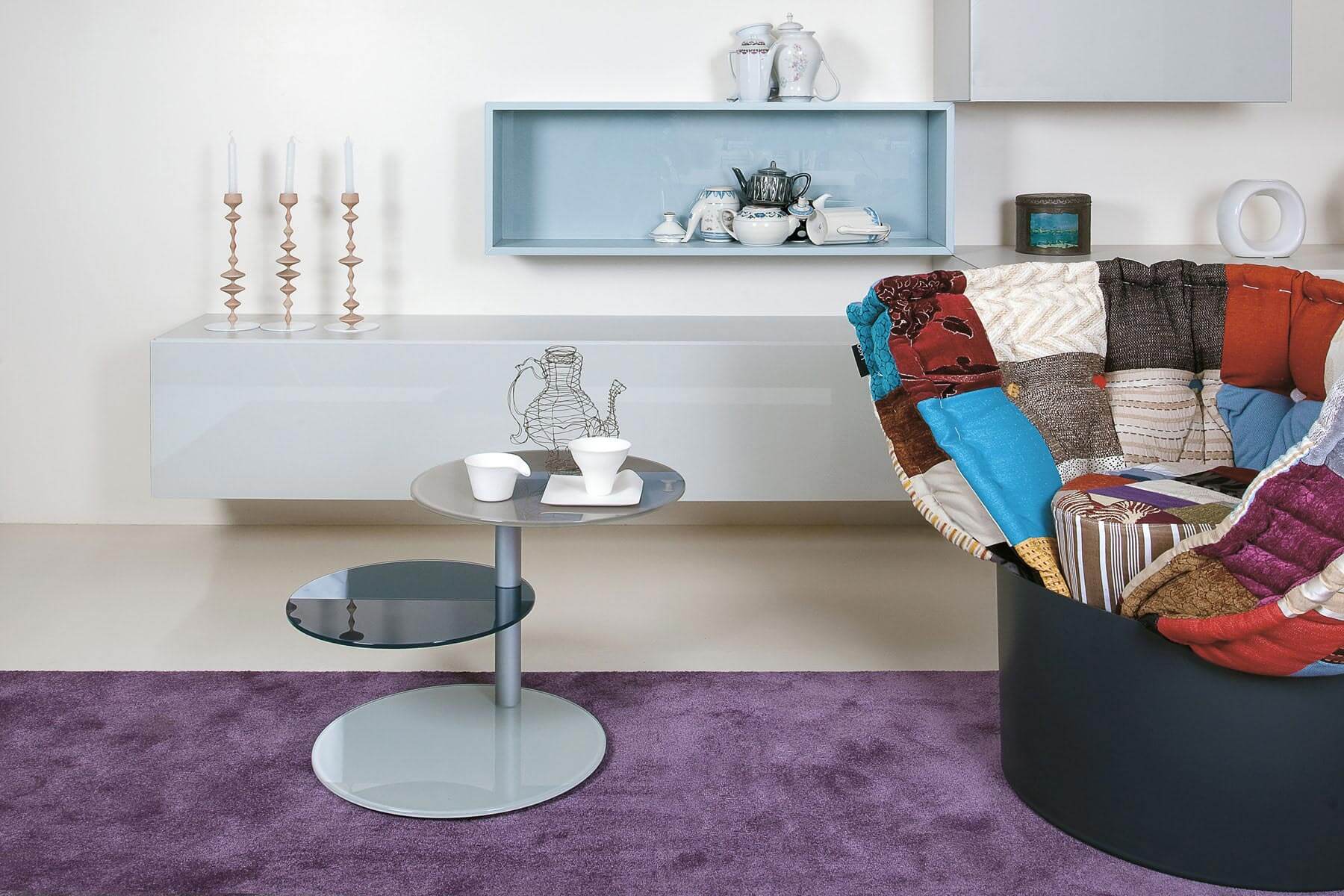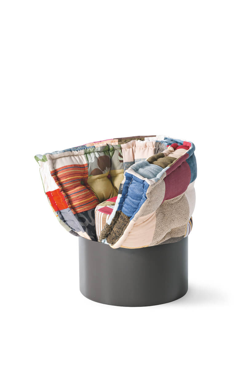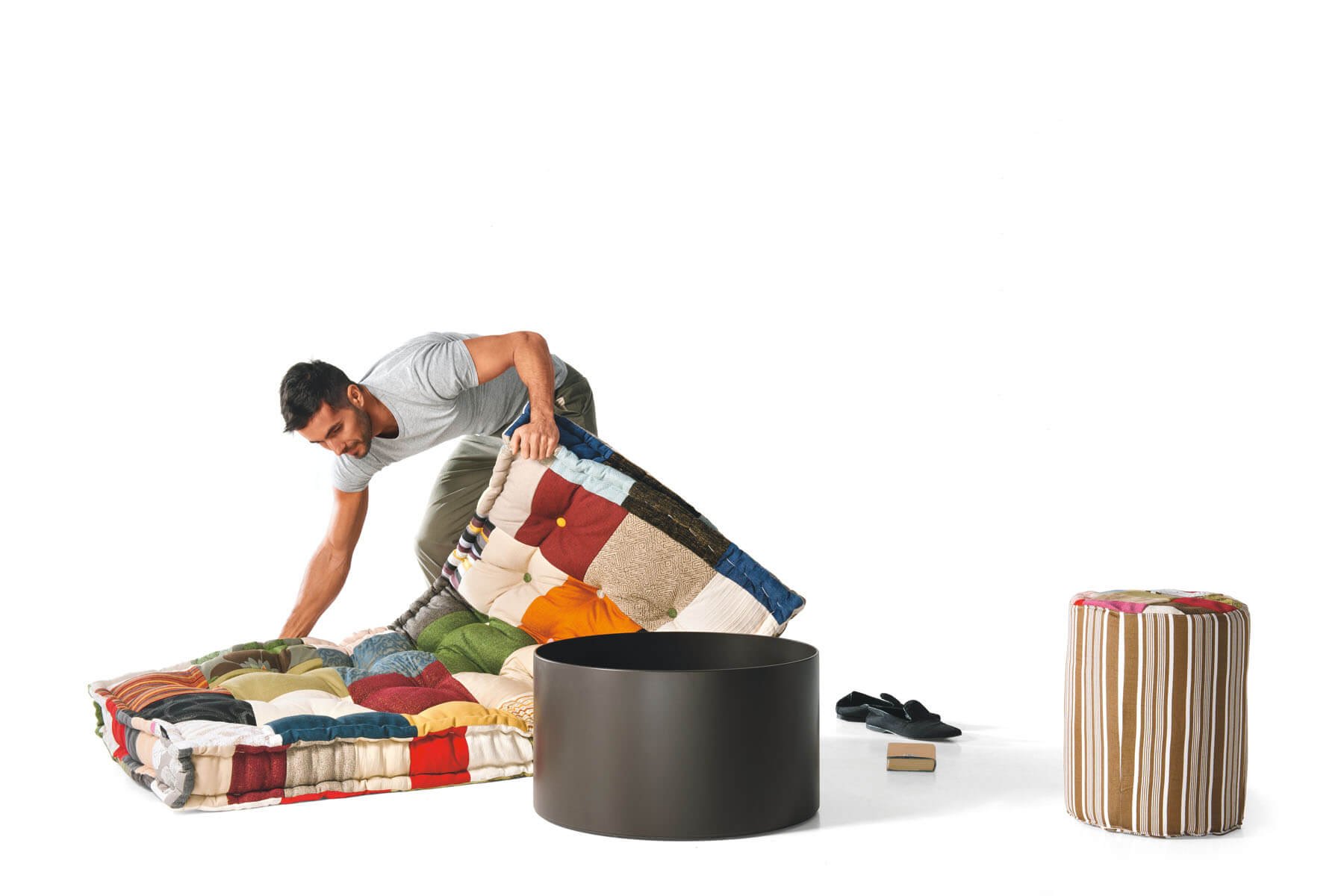 一个包裹在圆锥体中并塞进小圆柱形底座内的床垫构成了一张带有柔软扶手的沙发床。通过移除底座,床垫会自动展开并成为一张舒适的急救床。您还可以将底座倒置,变成实用的床头柜。