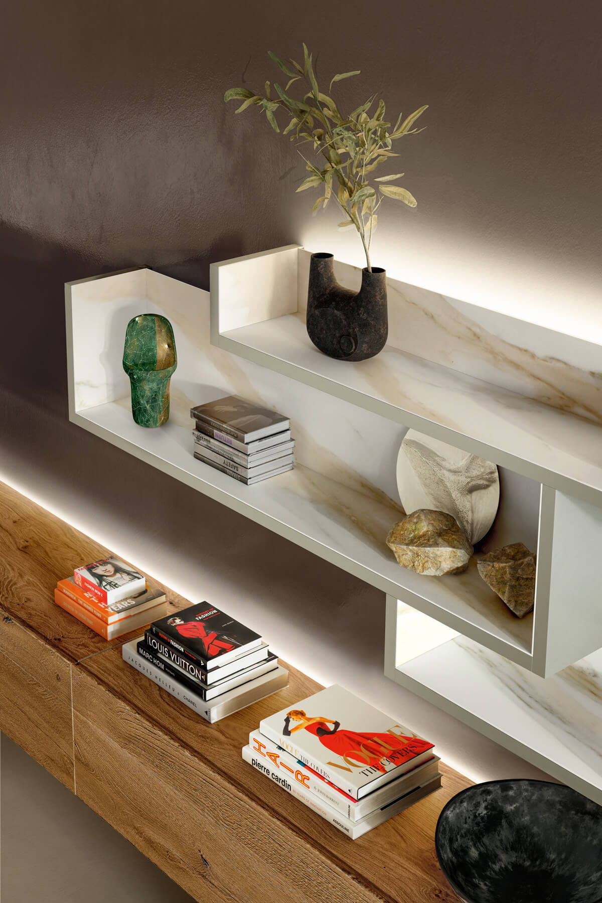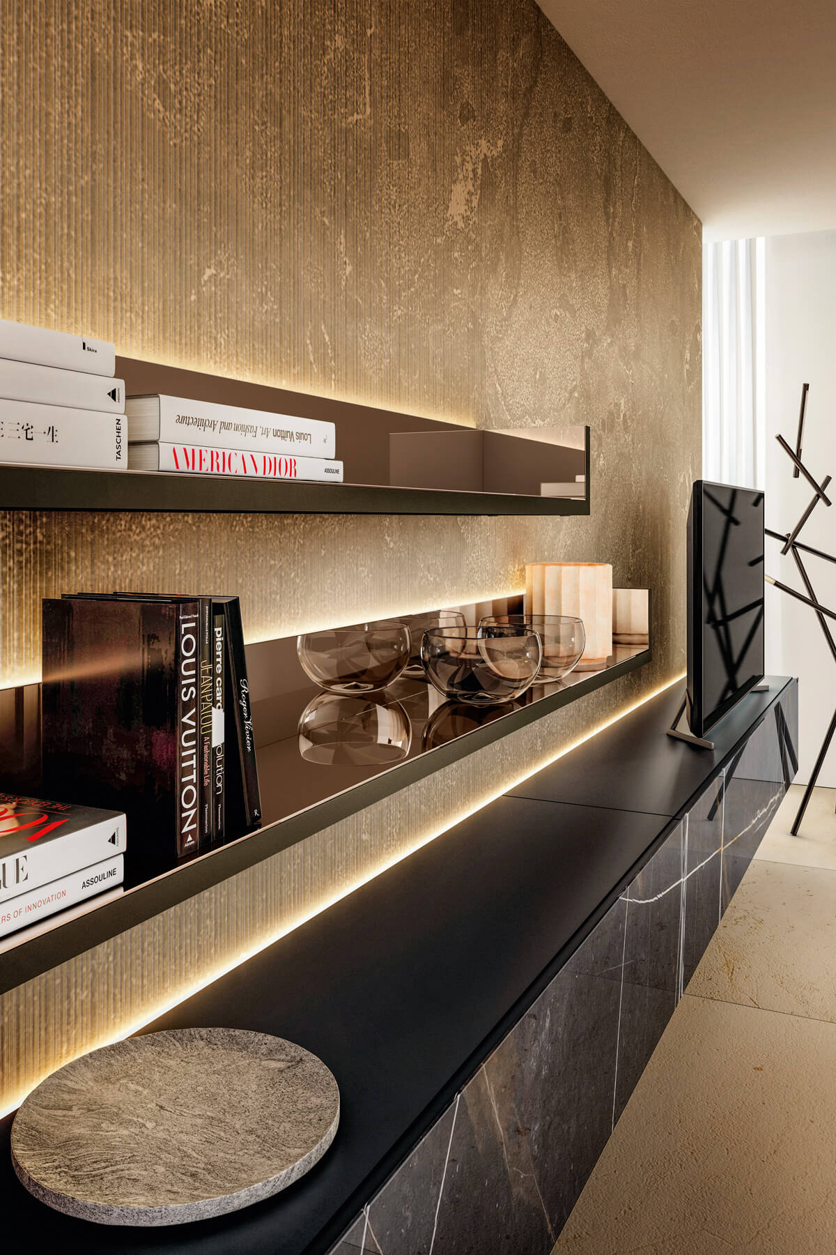 LagoLinea 是一个富有表现力的系统,可提供最大的设计自由度,以创造性和功能性的方式组织空间,为定制的墙单元赋予形状,这些单元可以在形状、颜色和材料方面进行高度定制。细长而灵活的线条,与36e8 系统对话,让您可以创建配备封闭或开放体积交替的墙壁。
