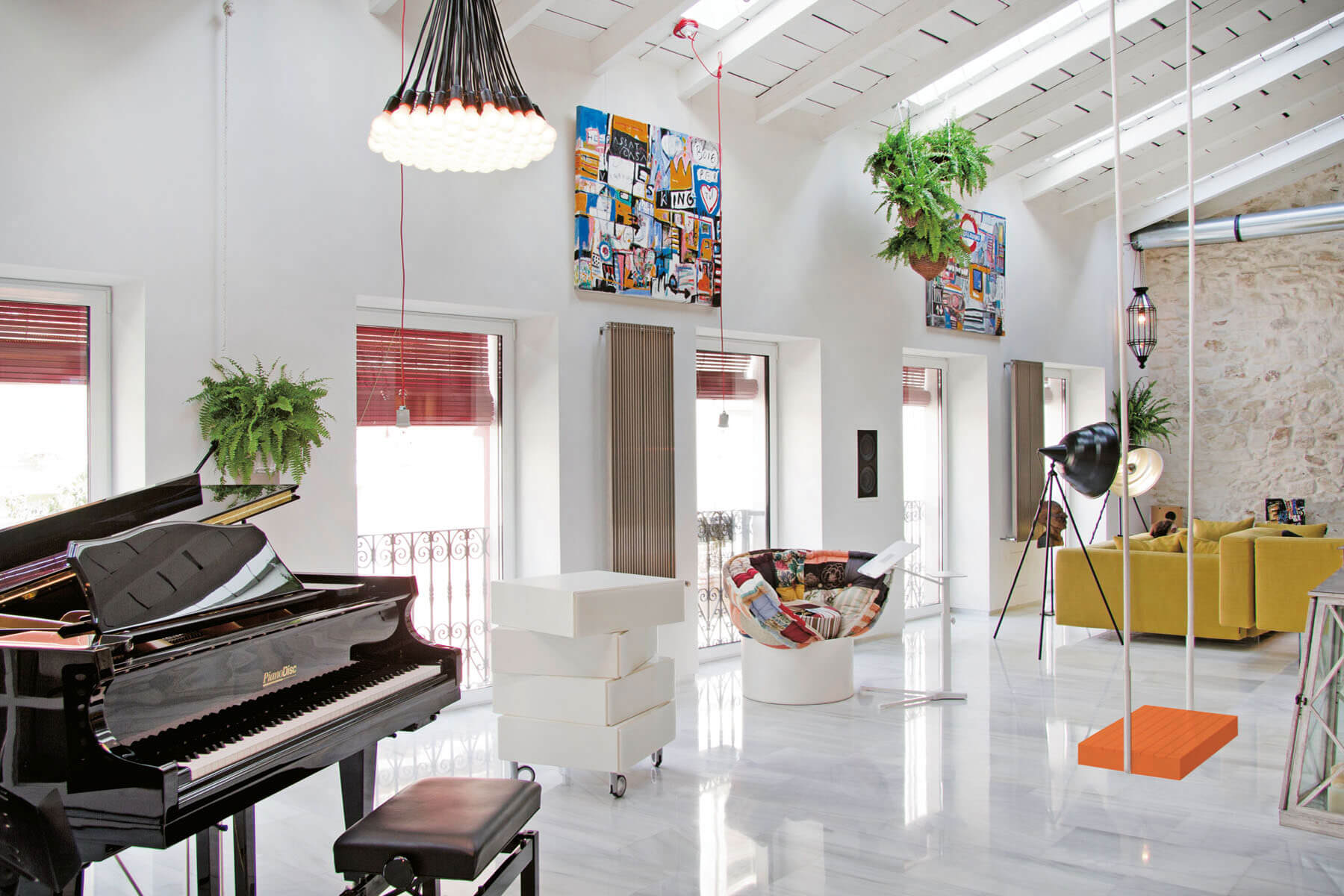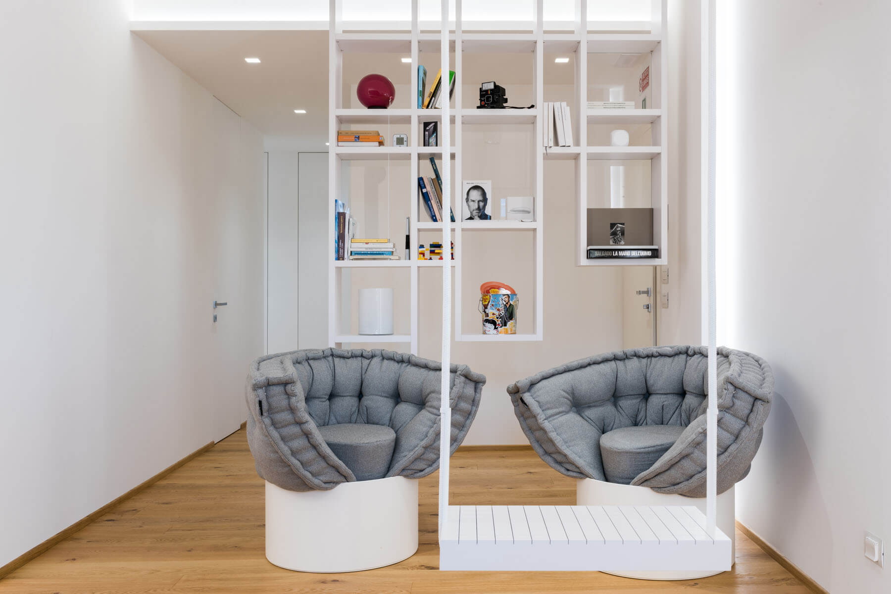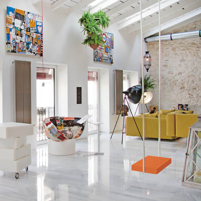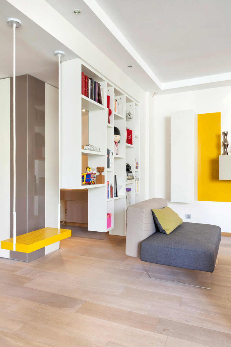 户外游戏变成了一个有趣且色彩缤纷的室内座椅,使房间充满活力和轻盈。软秋千是一种设计秋千,由涂有泡沫橡胶的漆木板组成。这样一来,秋千的座位看似僵硬,实则木马赛克在身体的重量下自我塑造,保留了柔软的惊喜。