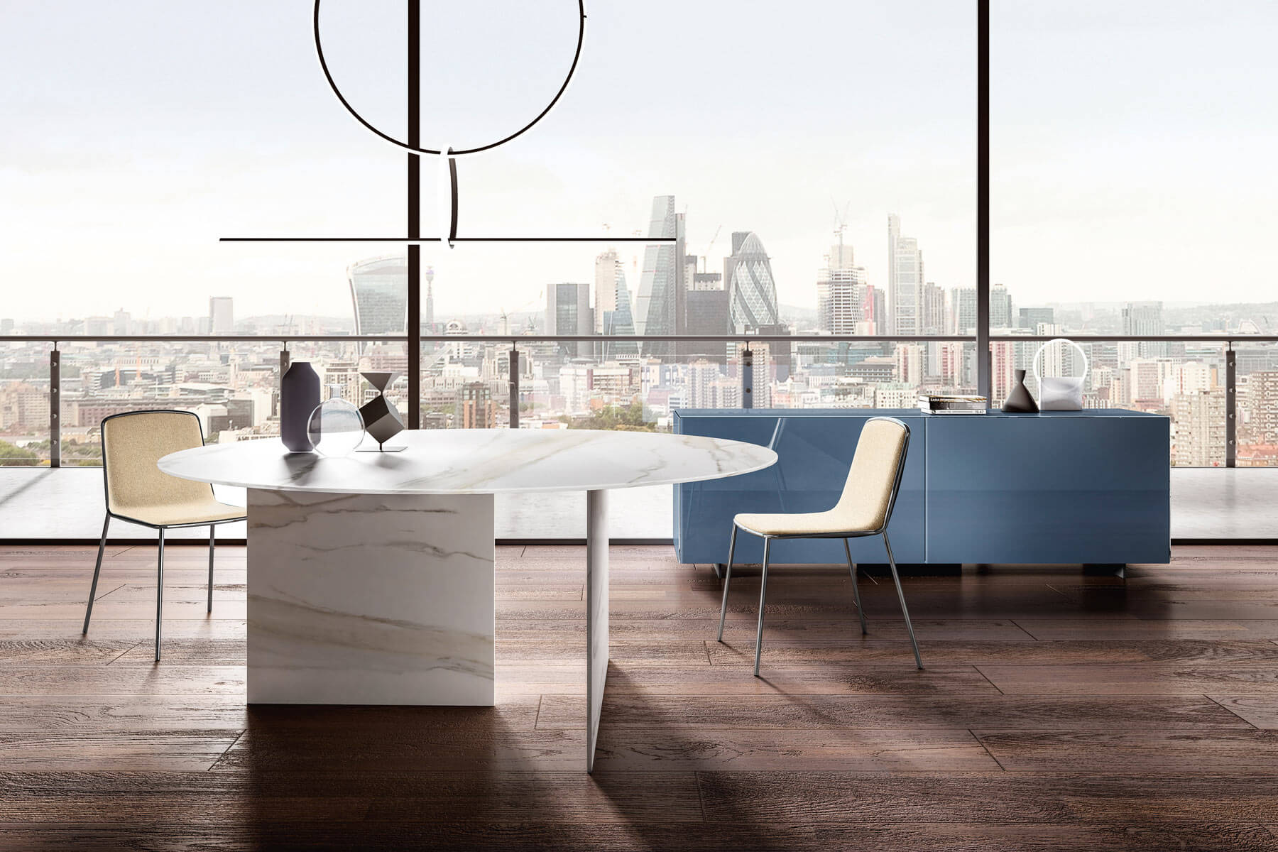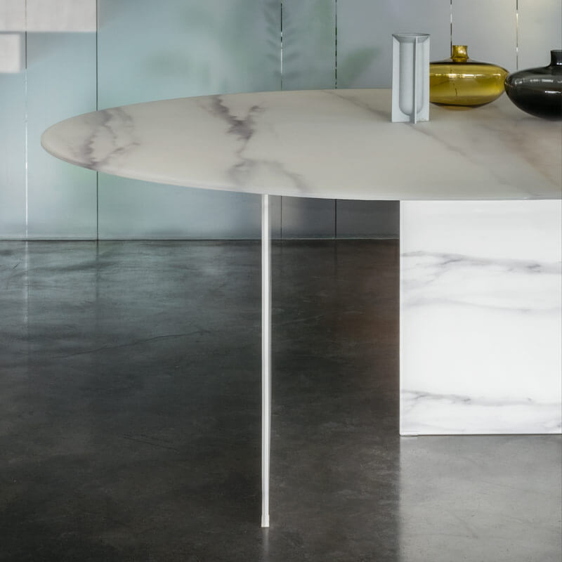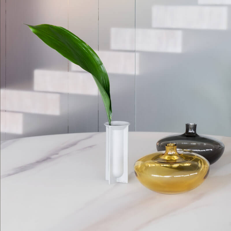 桌子的设计由薄薄的材料层组成,顶部为圆形或矩形:由于采用创新的 XGlass 技术,这种具有雕塑感和材料的物体可以在夹层玻璃中制成非常薄且坚固的桌腿,让光线渗透,赋予其独特的外观情绪来改变观点。Stratum 通过减少对资源和环境的影响,克服了天然材料的局限性。
