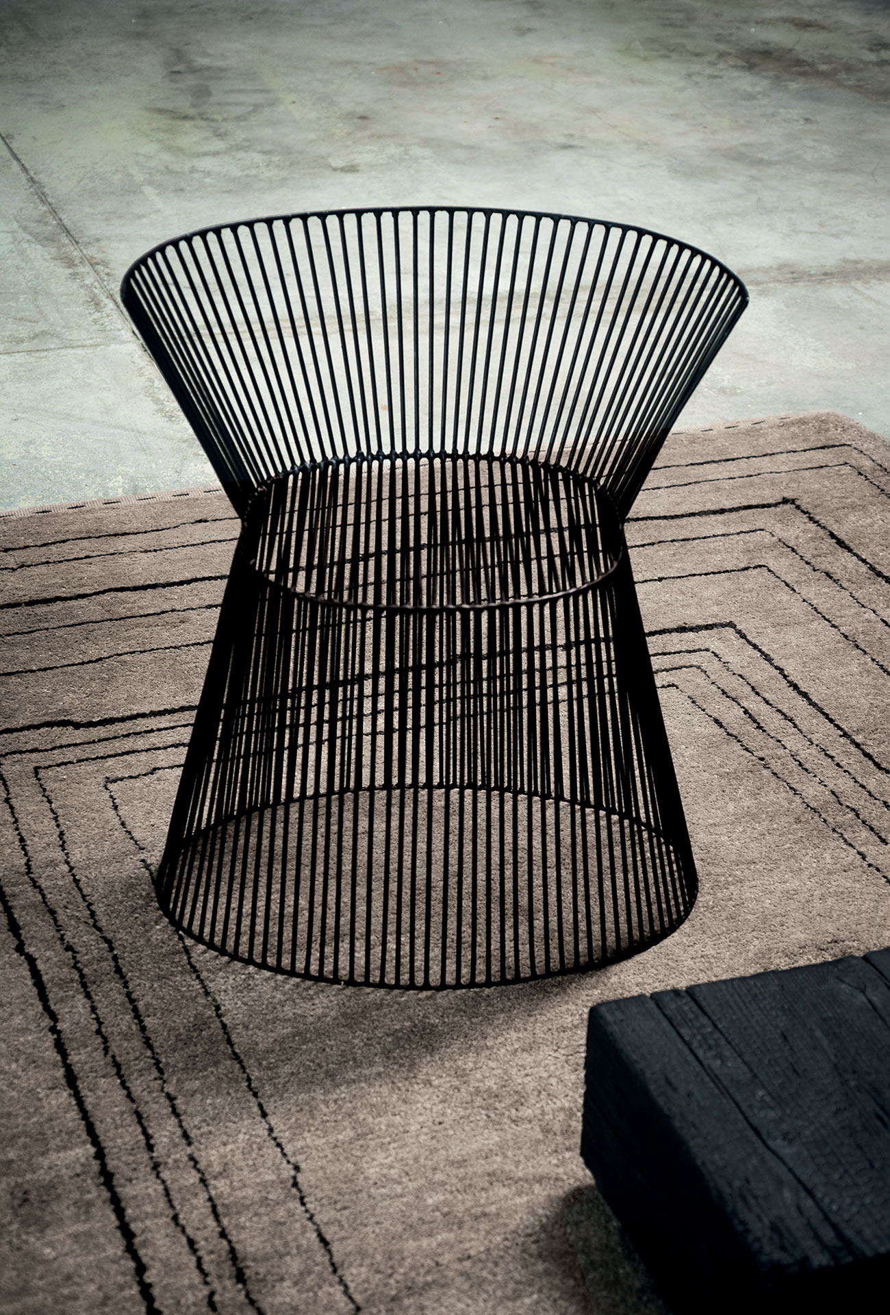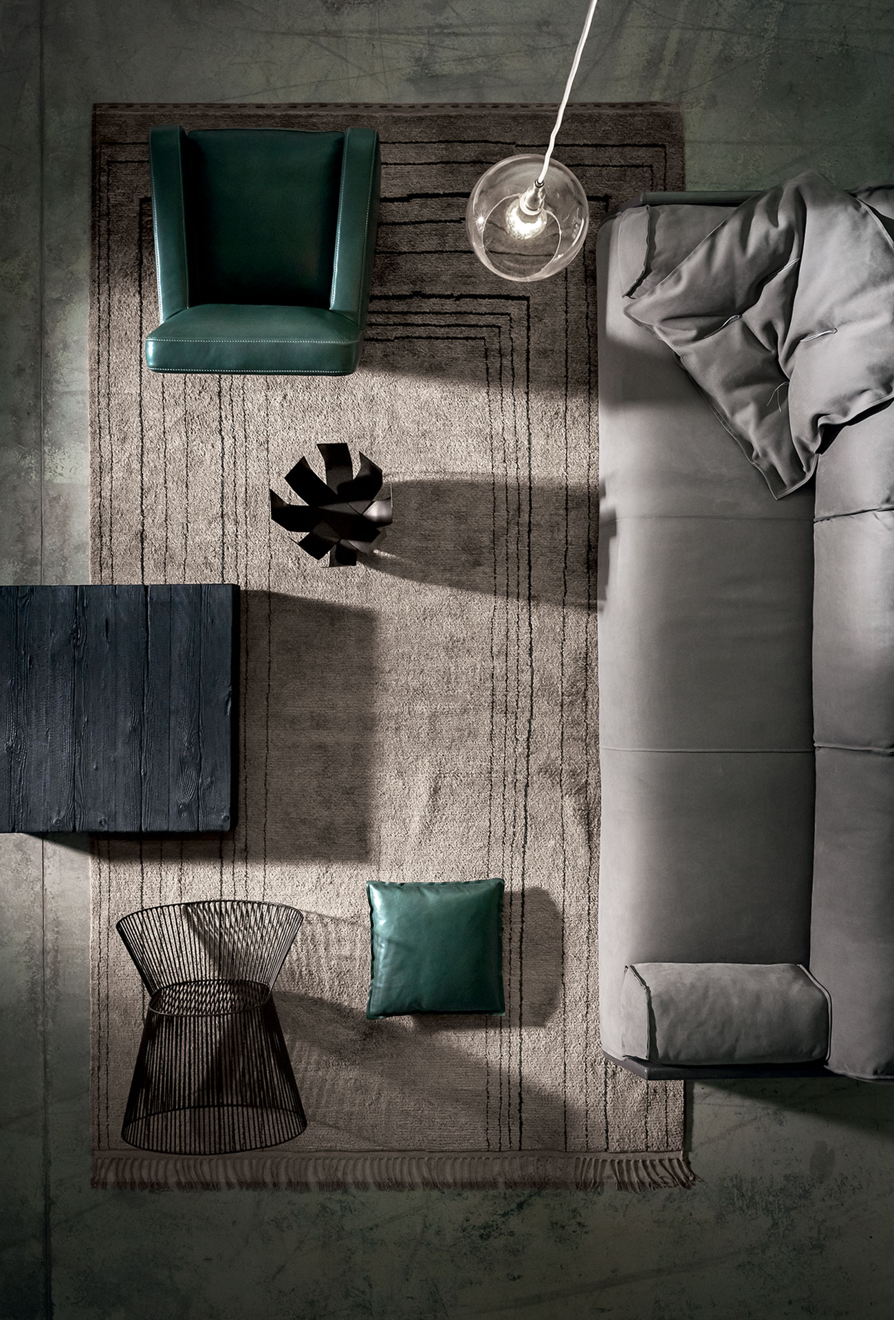 这块地毯完全手工编织在传统的垂直织机上,采用手工纺制的羊毛,具有 900 年初柏柏尔-摩洛哥地毯的特点。整理过程非常精细:在第一次刮胡子和洗手之后,每块地毯都经过处理,以创造出独特的产品:一个熟练的工匠用剪刀在表面上工作,以便给它原始地毯的典型不规则之处。一边是缝制的,与设计图案相匹配,并装饰有羊毛缝合。在另一边,边缘是一个接一个地编织,按照老柏柏尔地毯的风格。b/w 版本通过使用非染色羊毛进行,而其他版本则涉及使用植物染料。