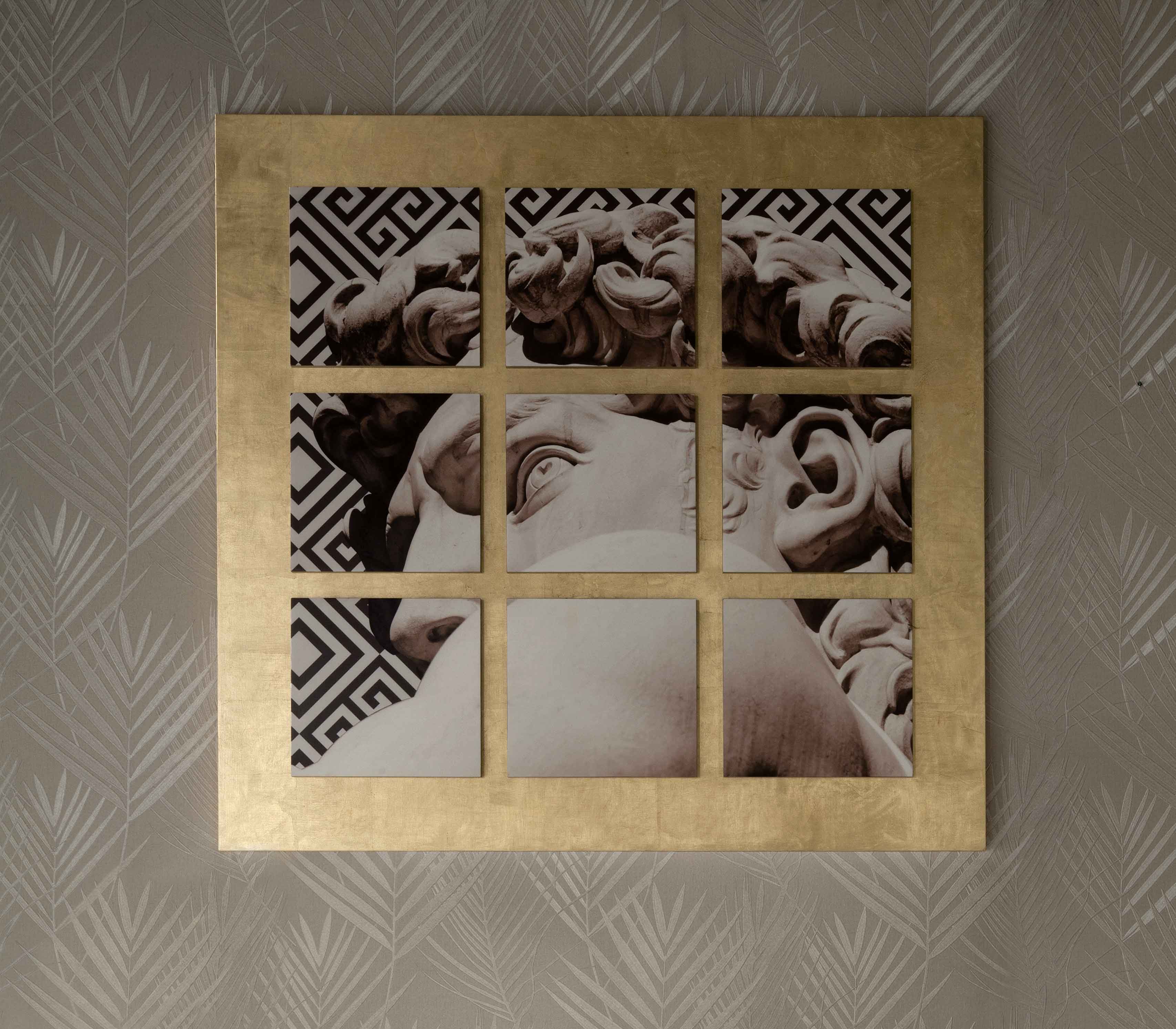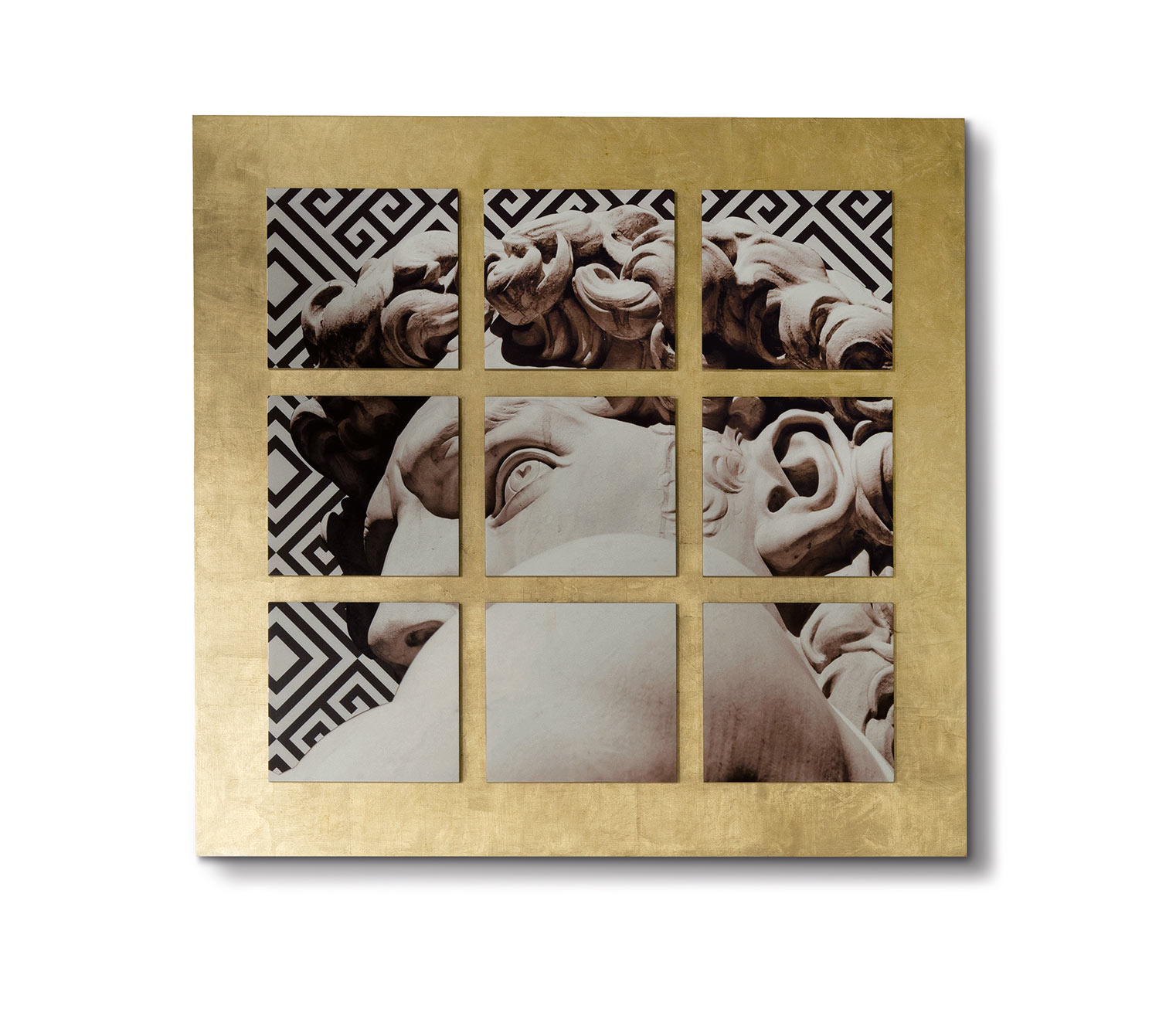 方形相框在金色或银色的叶子与9个浮雕面板。自定义。