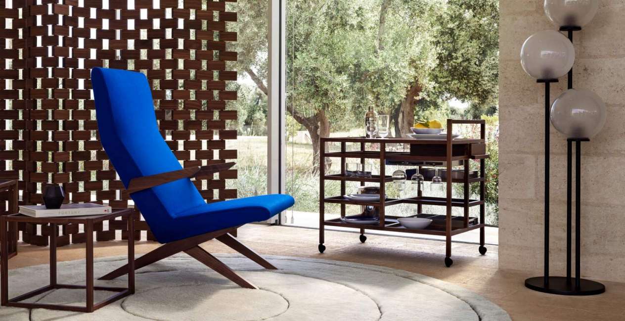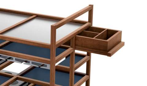 自战后以来,Bodil Kjör在灵活的家具的鼓励下,使房子开得空前的欢乐,这转化为设计新的家庭仪式和对舒适性的新需求。Bodil Kjör 设计了"服务车",一个带彩色中间搁板和不锈钢顶架的实木食品手推车,以克服厨房远离客厅而不丢失的问题,从而有机会在继续与他们对话的同时为客人提供服务。Bodil Kjör掌握了习俗的演变,在电视机前或露台上吃饭和越来越小的房子之间。毫不奇怪,服务车可以在不使用时存储在桌子底下,或保持可见作为一个小而优雅的国内建筑。