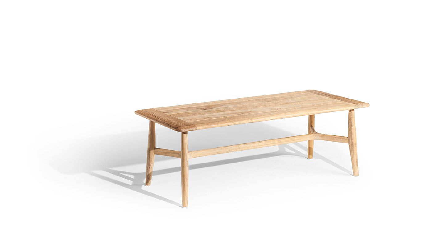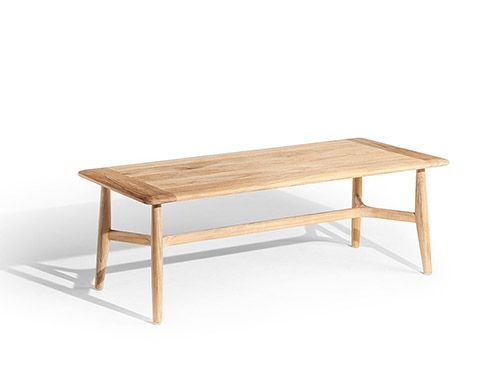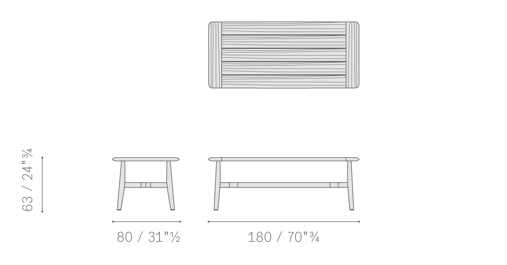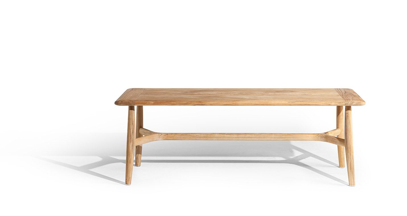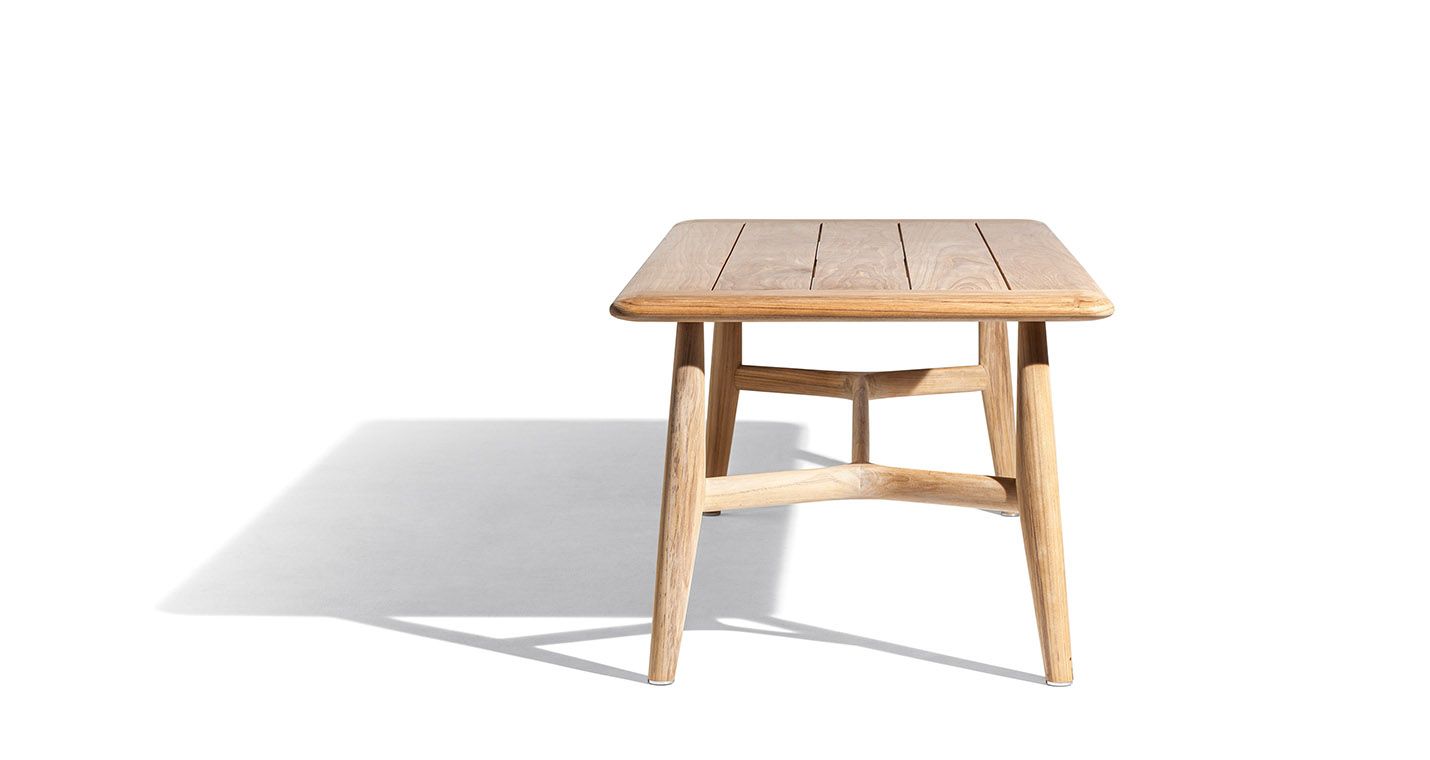 户外餐桌设计用于更非正式的用餐体验,尺寸宽敞,高度低,与罗伯托·拉泽罗尼设计的"秘密花园"户外家具系列的双座沙发和扶手椅的人体工程学座椅相得益彰。