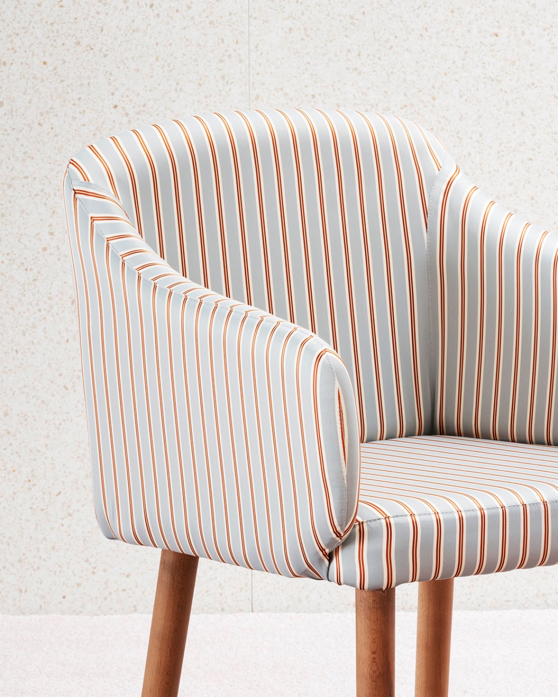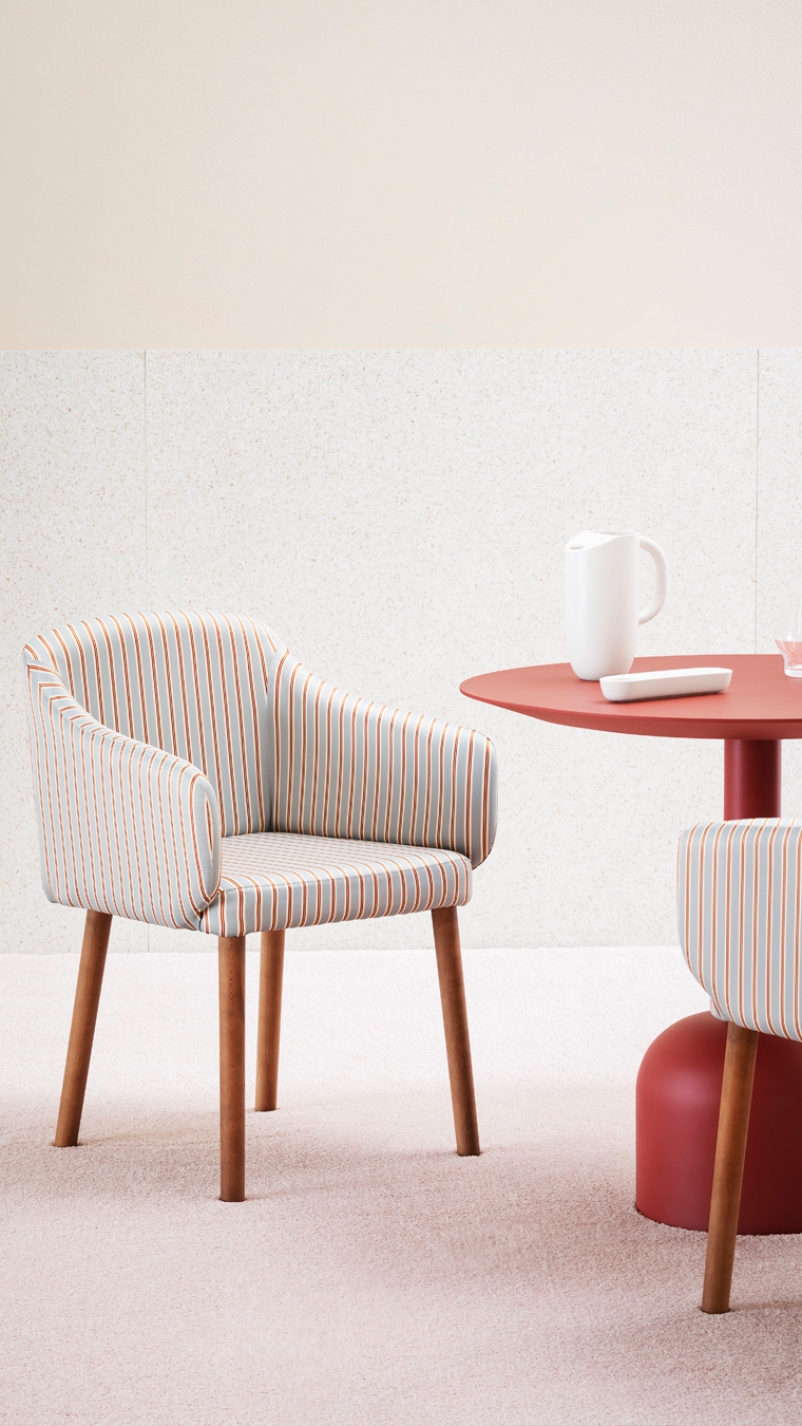 阿里穿着经典的方式,但总是设法惊喜。如果作为一把椅子,它显示了木腿,在扶手椅版本,它被覆盖在一个单一的大和欢迎体积。这是我们对经典作品的诠释,它有助于改善公共和家庭环境。