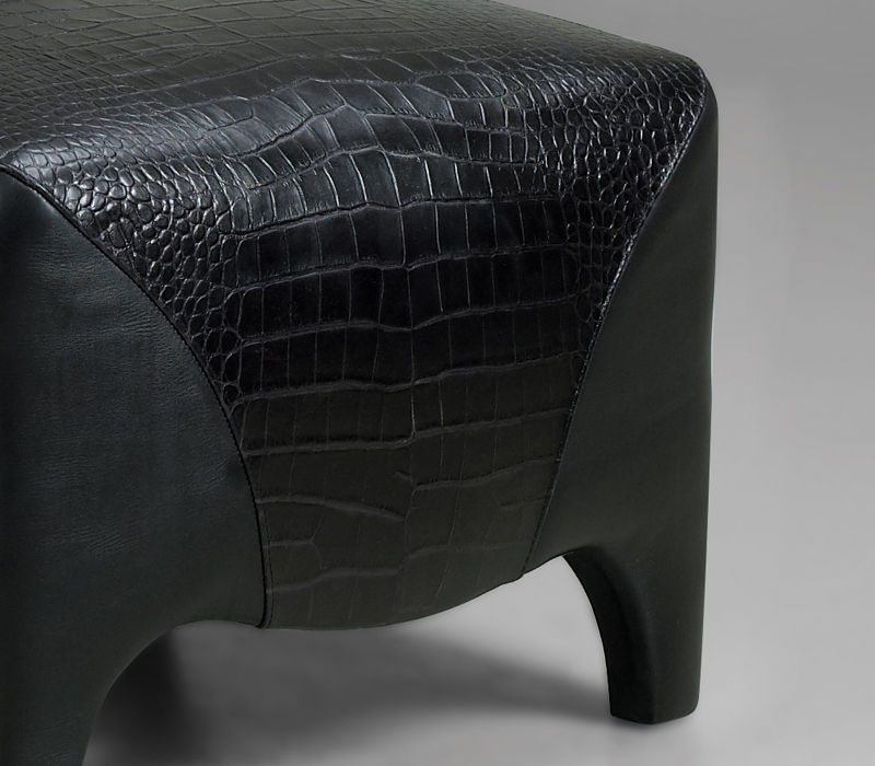 舒适 + 放松 俱乐部有不可拆卸的面料和皮革覆盖物。 pouf 是软垫俱乐部家具系列的一部分,其中还包括一把躺椅。