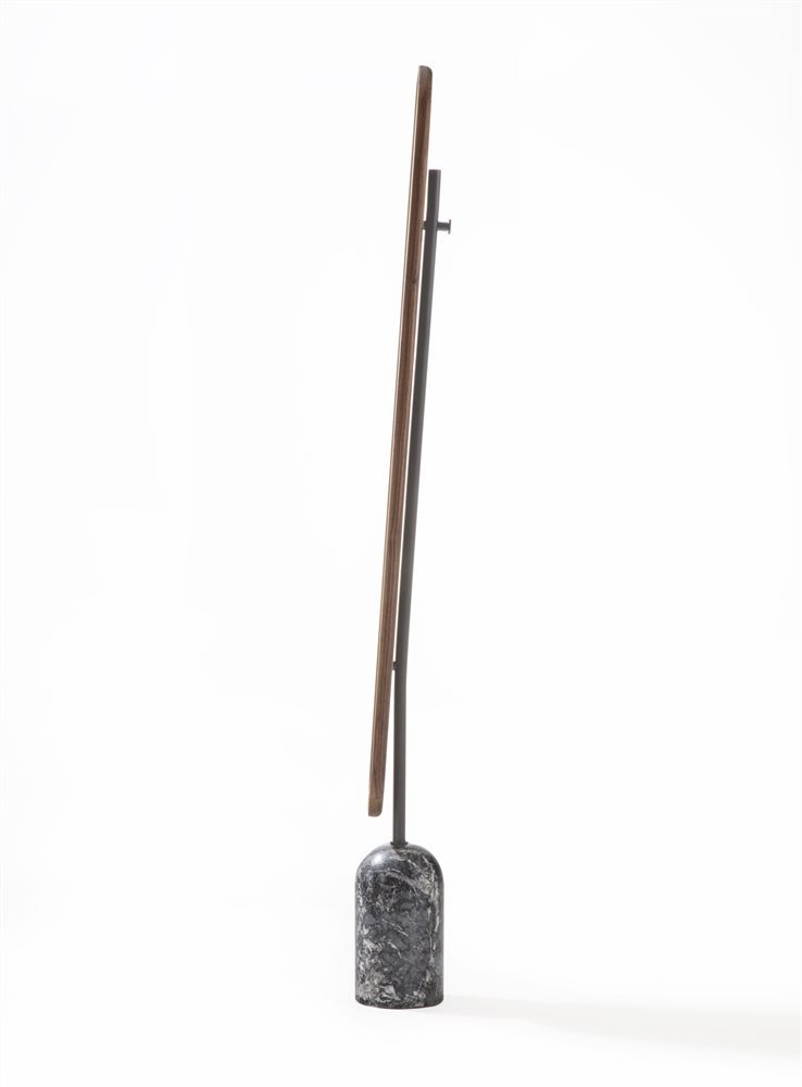 镜子与圆柱形底座在白色卡拉拉大理石或卡尼科灰色,中央茎在漆金属与皮尤特灰色完成和框架在固体卡纳莱塔核桃。