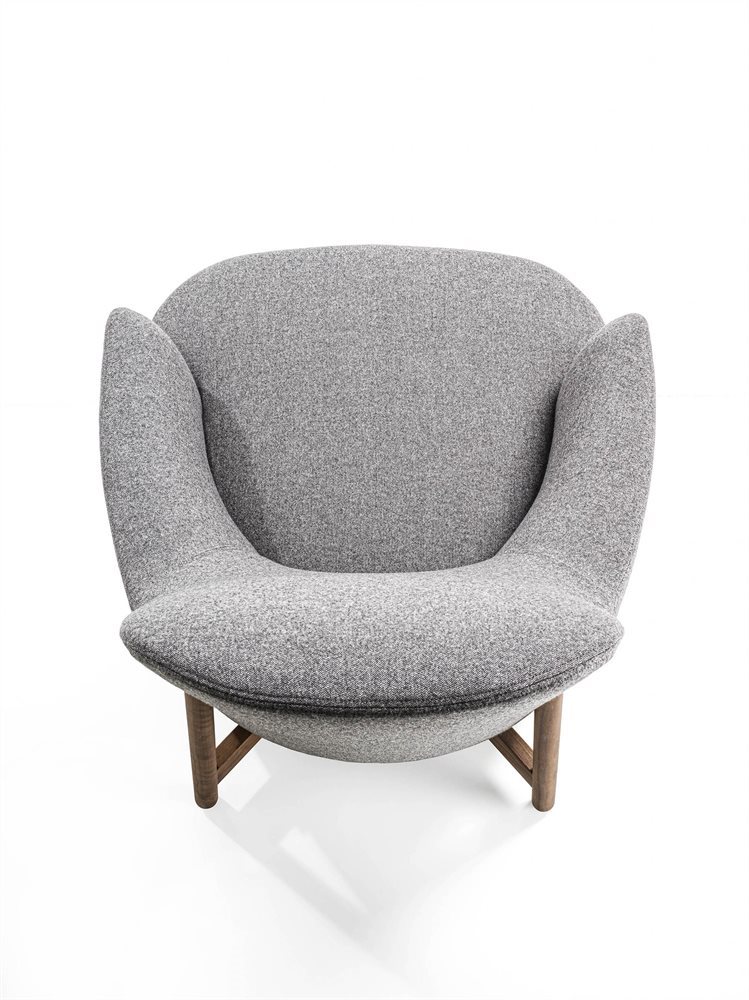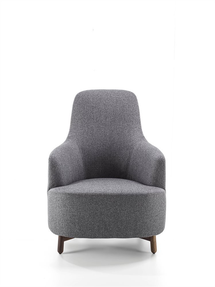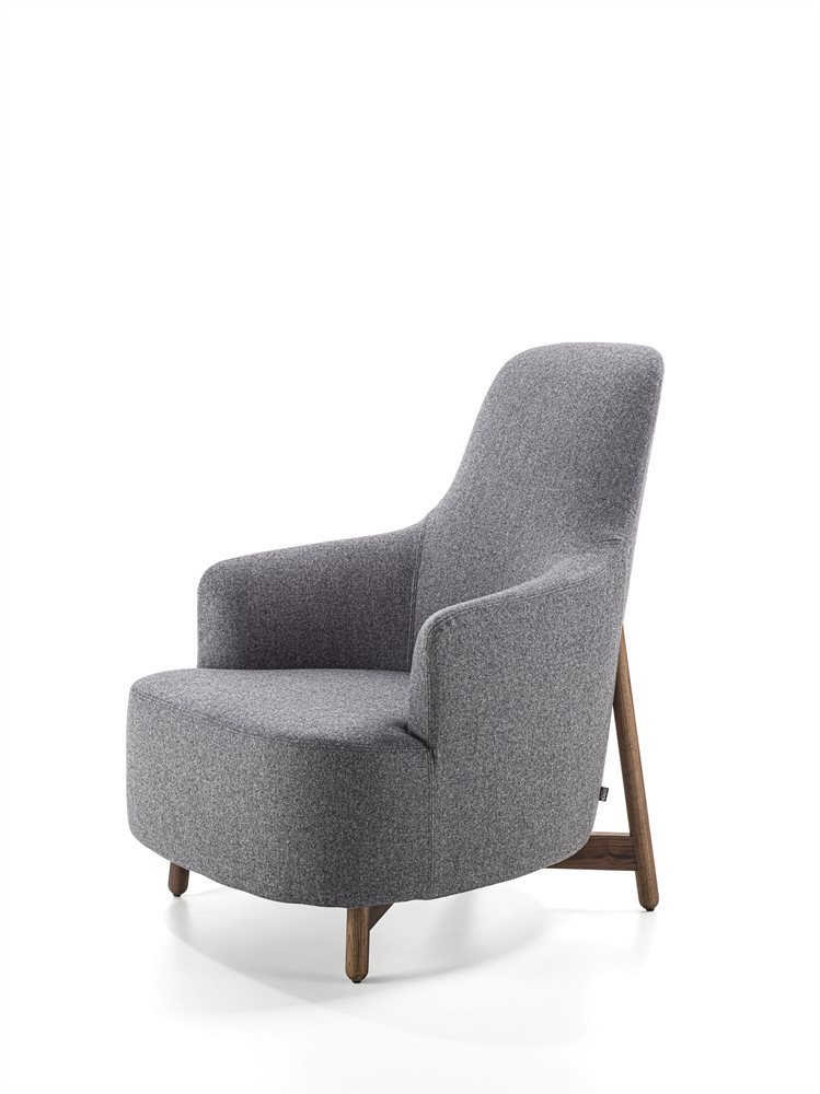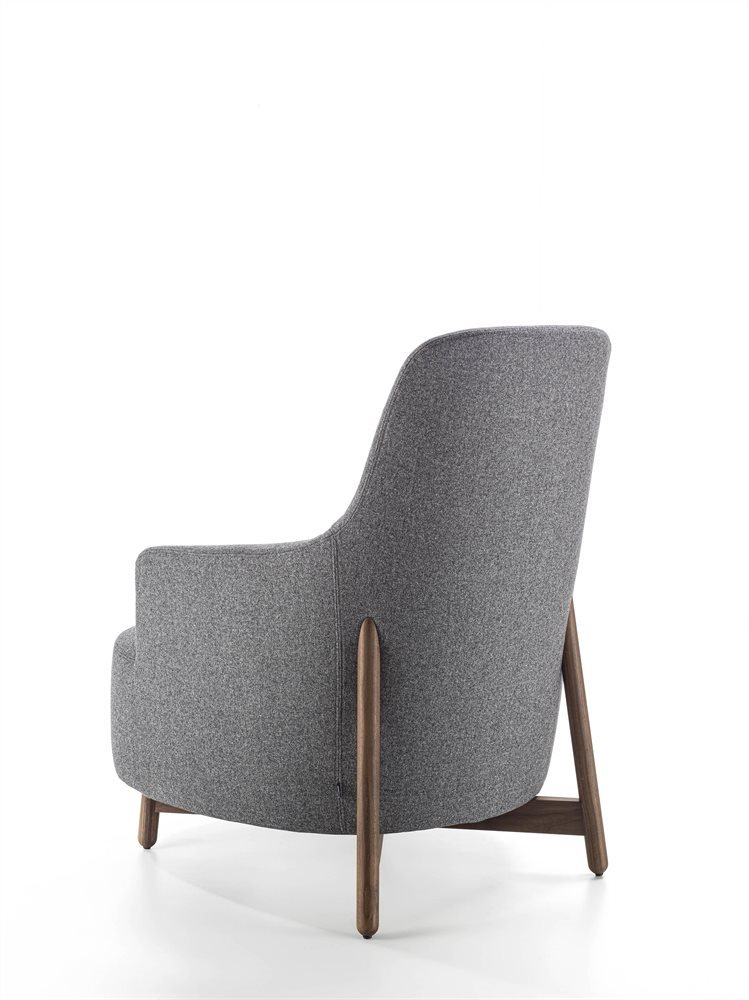 扶手椅与坚实的卡纳莱塔核桃结构和室内装潢在收藏的面料。可拆卸织物盖和不可拆卸皮革盖。将不同织物组合为内部和外部填充结构的可能性。杨树胶合板内部外壳和带带肩带座椅的实心冷杉。聚氨酯填充在不同的高度。