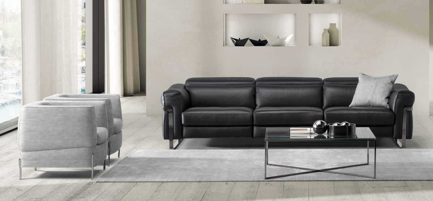 Fidelio 是设计师 Manzoni & Tapinassi 的作品,精致的轮廓架构,可搭载高科技休闲系统,点缀的压边车线,以闪亮的金属将沙发包裹一圈,更突出了设计效果。