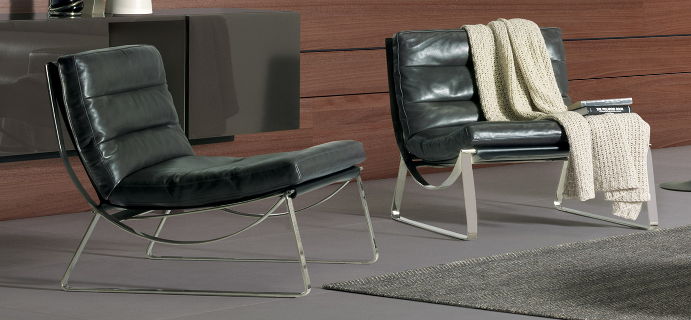 这款扶手椅的座垫填充物舒适,以轻质金属予以点缀,勾勒出时髦的都市化风格。