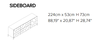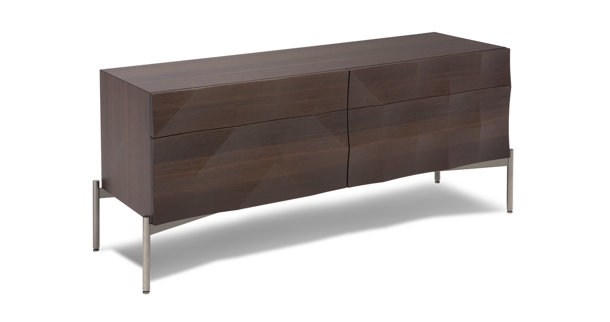 围绕技术与传统之融合的独特之作。 Amber餐边柜起伏的线条宛如阿普利亚市穆吉亚地区连绵起伏的山脉,通过专业的缩放刻模技术在柜门表面营造三维效果。