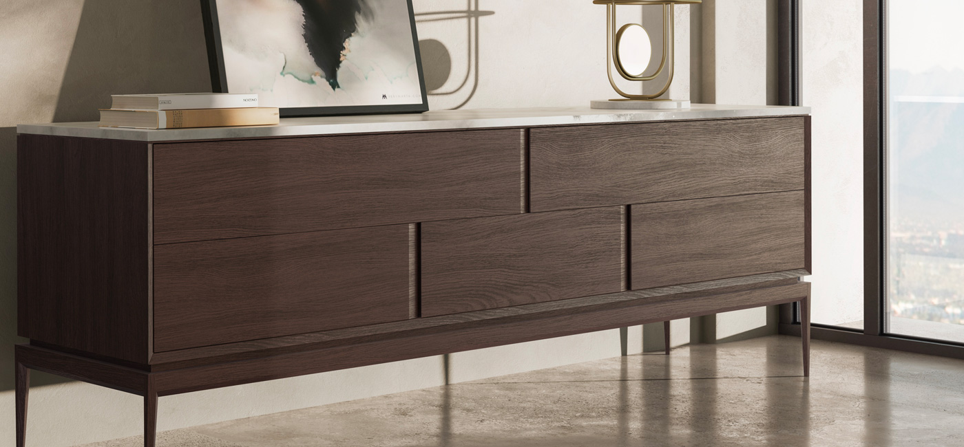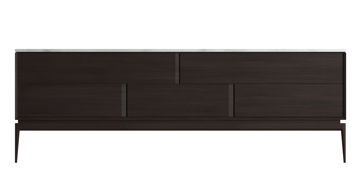 Munari 是Manzoni & Tapinassi 的设计作品。包括抽屉置物柜和床边柜。 该系列作品散发着强烈的个性,以高品质材质精心打造,包括 Calacatta Oro 和 Dark Emperador 大理石。