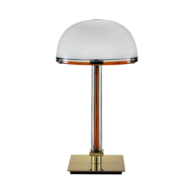 它静静地放在架子上,等待着发光。是贝尔博伊光穿过牛奶白玻璃,散发出柔软而强烈的光芒,露出红色和茶的色调,使玻璃和金属茎的核心活跃。贝尔博伊是专门作为台灯。