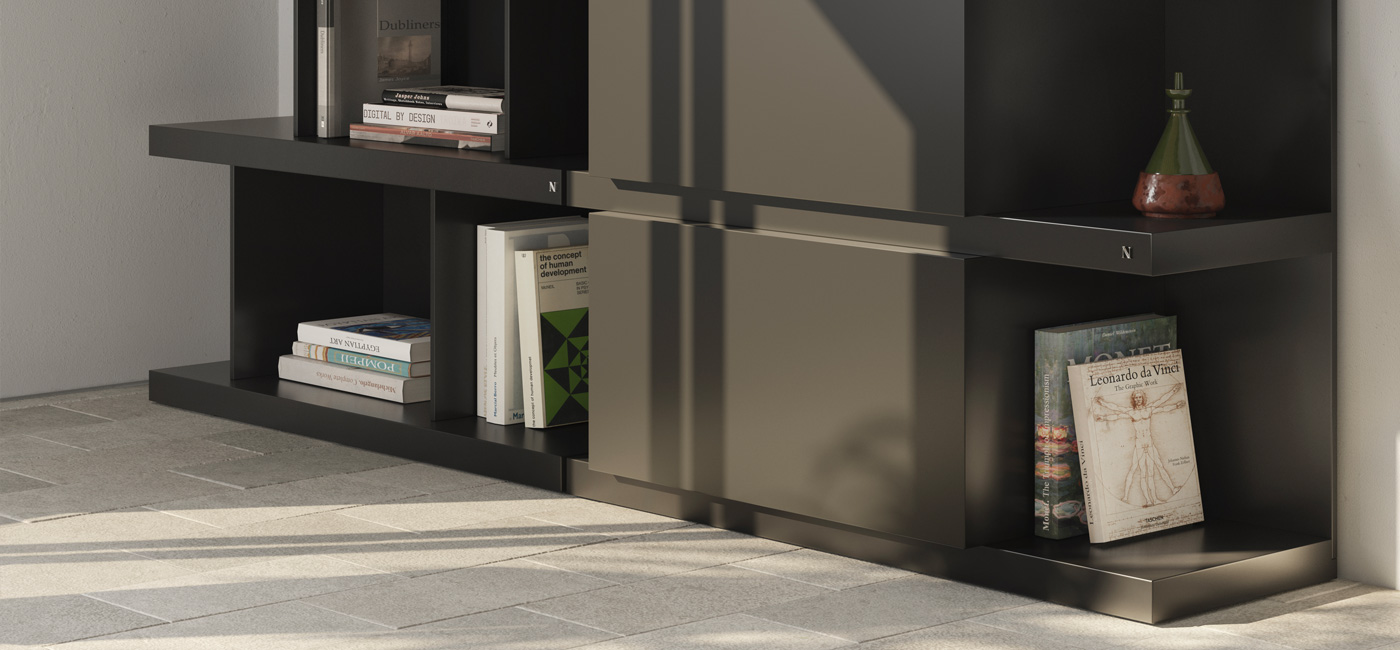 Kubika 是设计师Pierangelo Sciuto 的创意作品,模块式储物空间,以水平粗线条为主,为空间增添和谐之美。每个组成部分都可以在滑轨上独立移动,可实现不同的组合效果。 Kubika 壁式展示架的每一个模块都可与其他模块搭配在一起,在满足美观要求的同时,让您的储物空间更加平衡饱满。 Kubika 的模块既有开放式,也有闭合式,您可以根据自己的储物和展示需求,定制自己的壁柜。