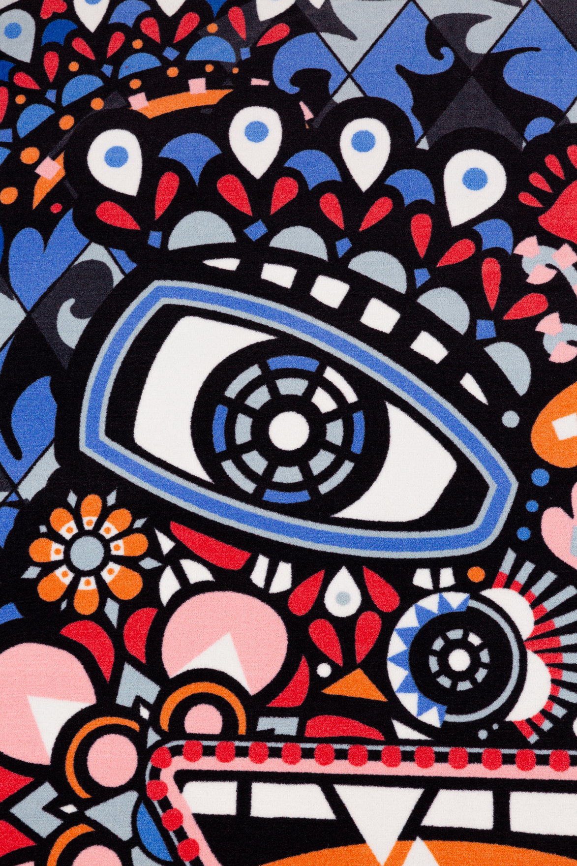 怪物地毯是马塞尔·万德的怪物系列的一部分。有一天,马塞尔醒来,清楚地记得一个梦幻般的景象。随着睡眠的最后残余从他阴云密布的头脑中退出,他写下了他对来世的憧憬。关于死亡、蝴蝶、缪斯和永恒派对的故事。这个故事启发了怪物系列,包括这圆地毯。任何房间的醒目,其明亮的颜色和一个耐人寻味的背景故事。