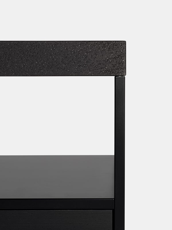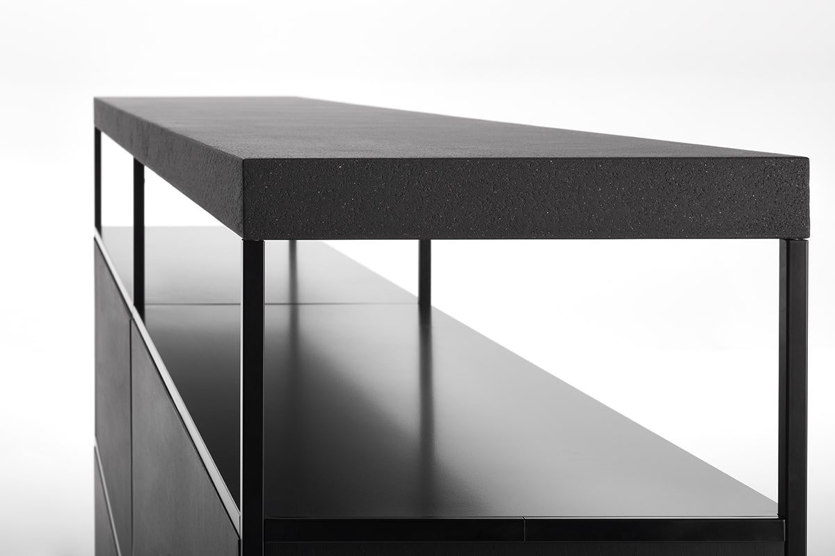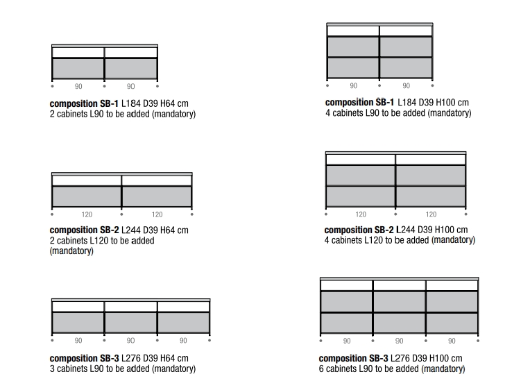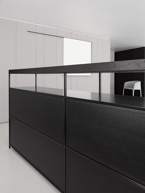 提供8种配置,高度为64或100厘米,有4种颜色 - 白色、石墨灰色、阴影灰色和珍珠镍 - 它配备了由意大利核桃或重建的白色卡拉拉和重建的黑乌木大理石制成的材料顶部,并配备了容器或抽屉。