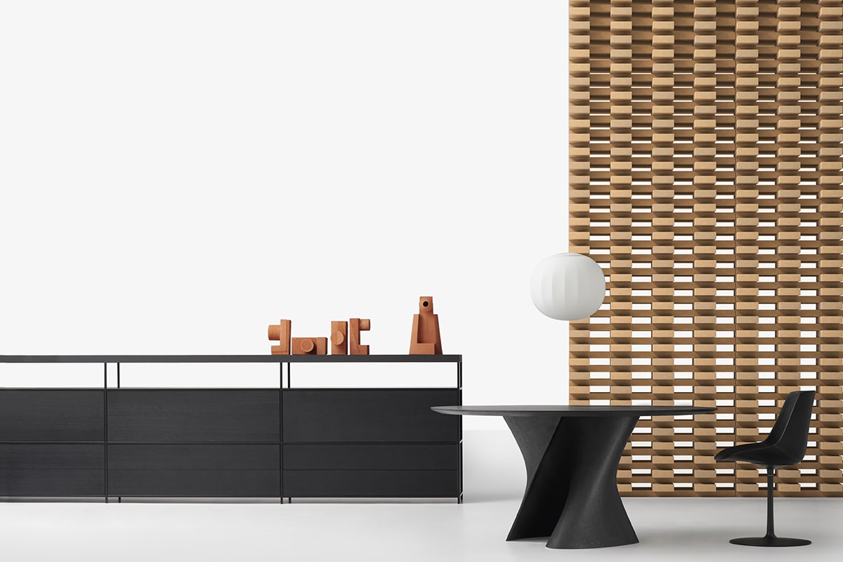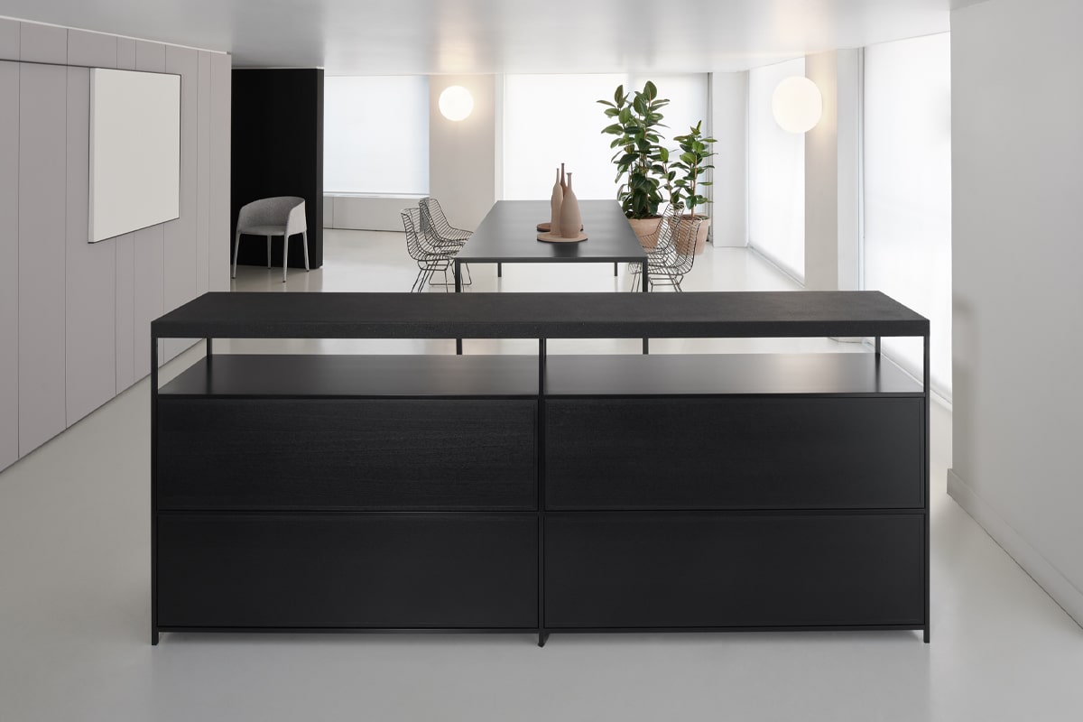 Minima 3.0 侧板集合组织空间,有助于定义环境。侧板版本是一个柜子,非常适合不同功能,并提供额外的存储空间。