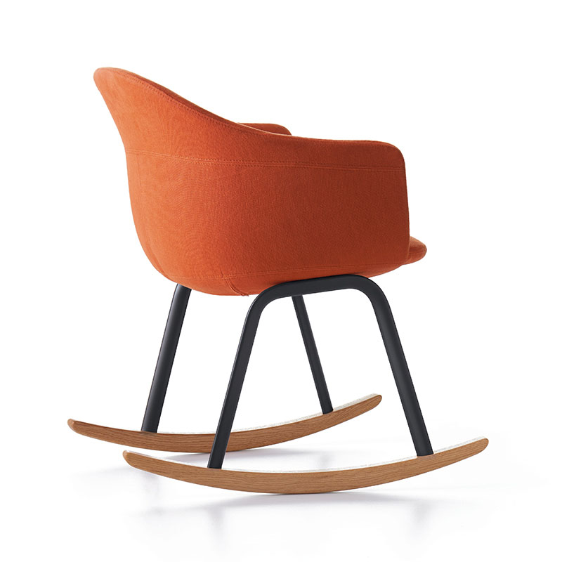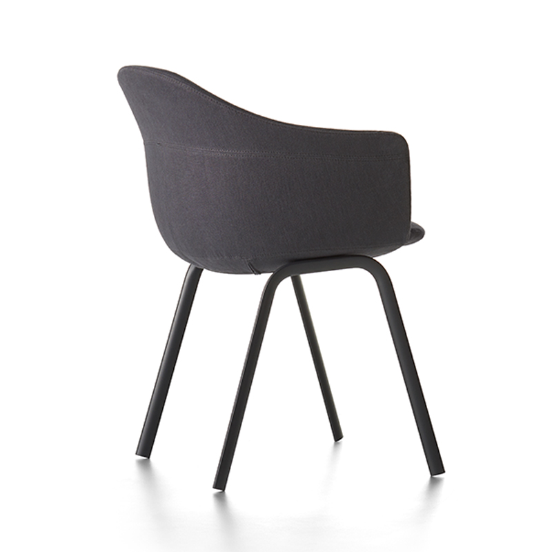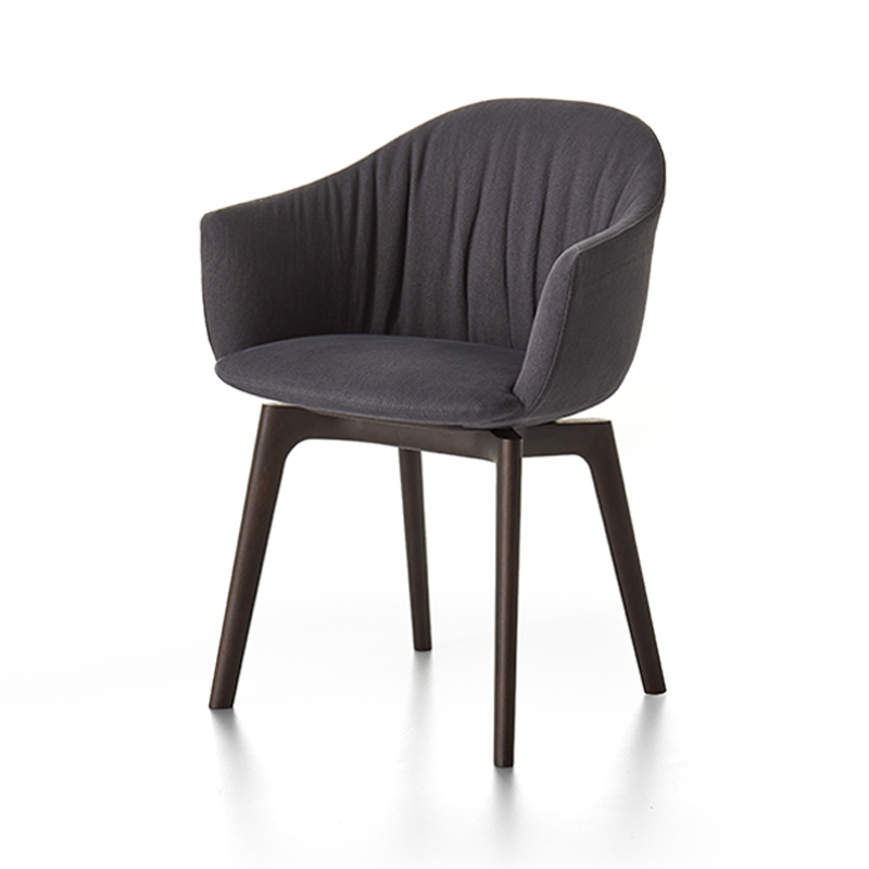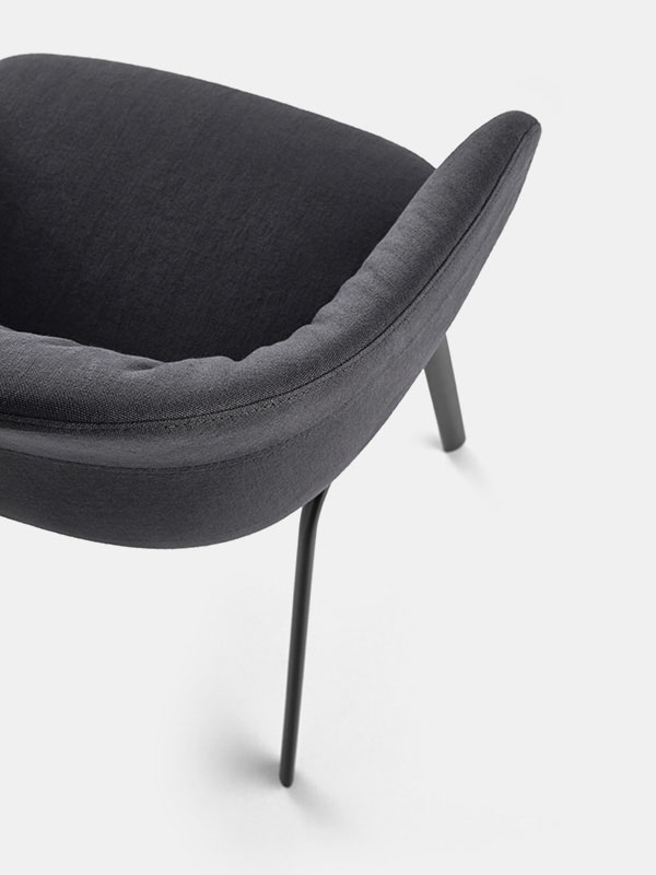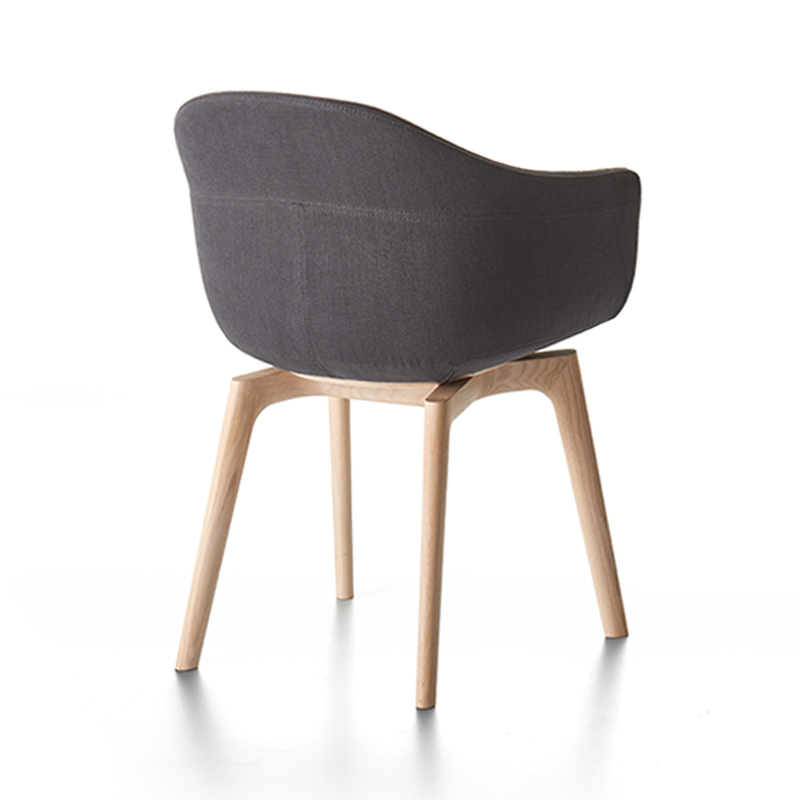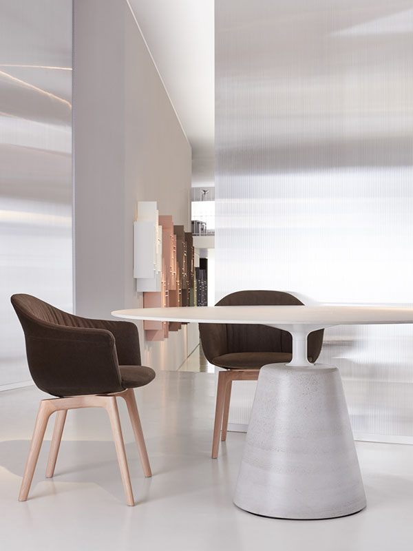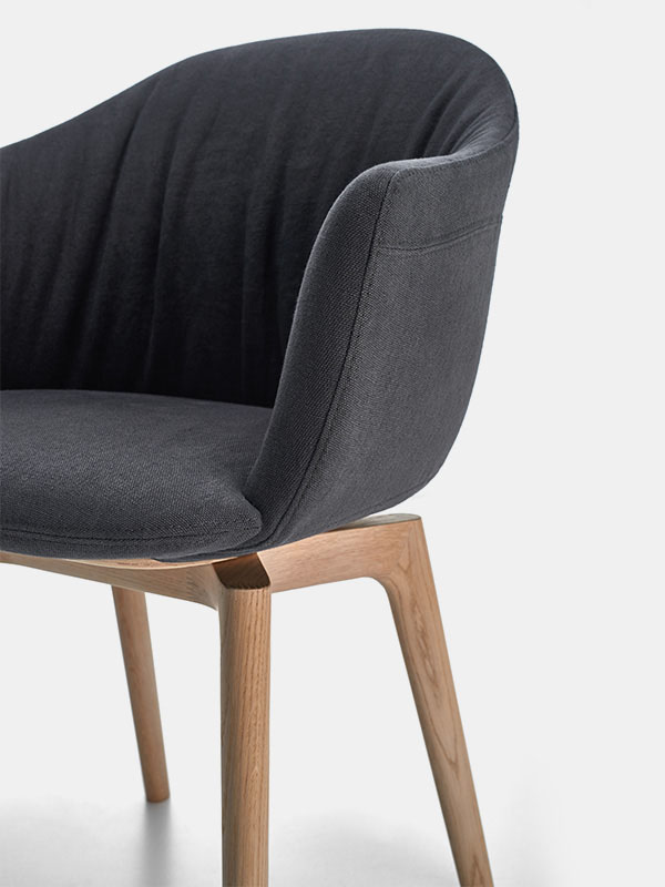 靠背上的双接缝突出显示形状和张力:梳子接头将腿部与木基相连,增强了实木作业的护理和手工专业知识:椭圆形钢管倾斜至45°,是技术专长和先进生产的代名词。
