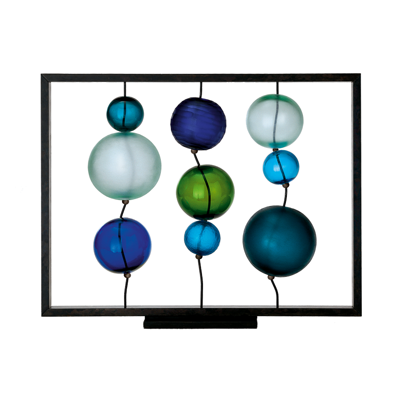 一个接一个,交替的球体沿着金属线运行,按大小和颜色排列。古吉斯伯格和菲利普·鲍德温的这件独特作品反映了宇宙的微妙平衡和惊人的奇观。