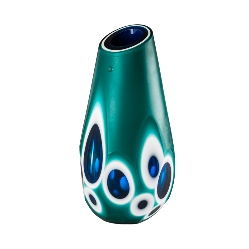 颜色唤起水晶愈合的艺术:每个花瓶都有它自己的精神意义,神奇的属性和愈合特性,就像大自然中的大地测量仪一样。它们具有柔和圆润的形状和光滑不透明的表面,而底座上的切口则显示出闪闪发光的颜色层。精心制作的作品反映了VENINI的玻璃吹制大师的技能。