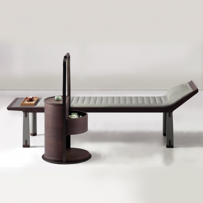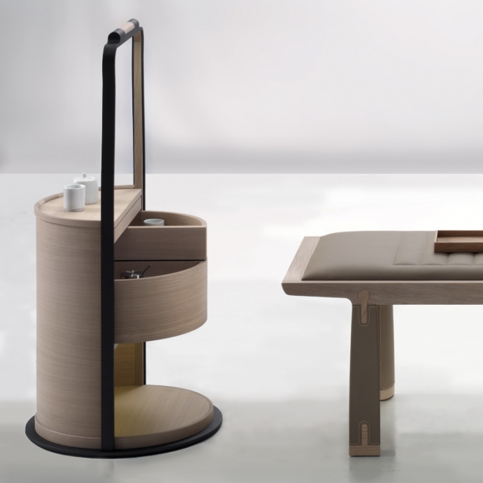 SIMA 57013 床边桌 边柜, 巴西龙凤檀木或天然橡木旋转盘子与收纳格, 金属底座与围边, 暖色感应LED阅读灯与夜灯.