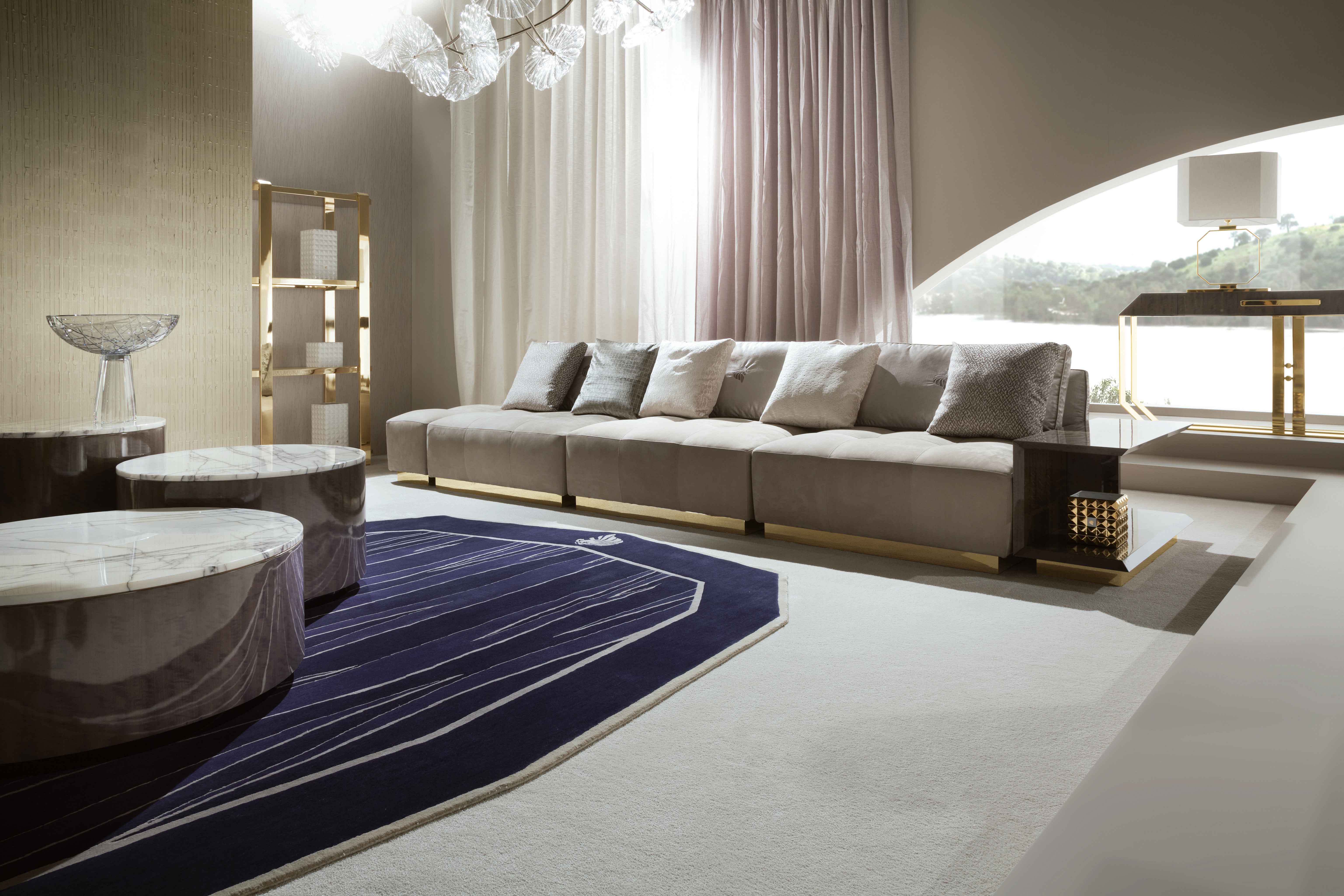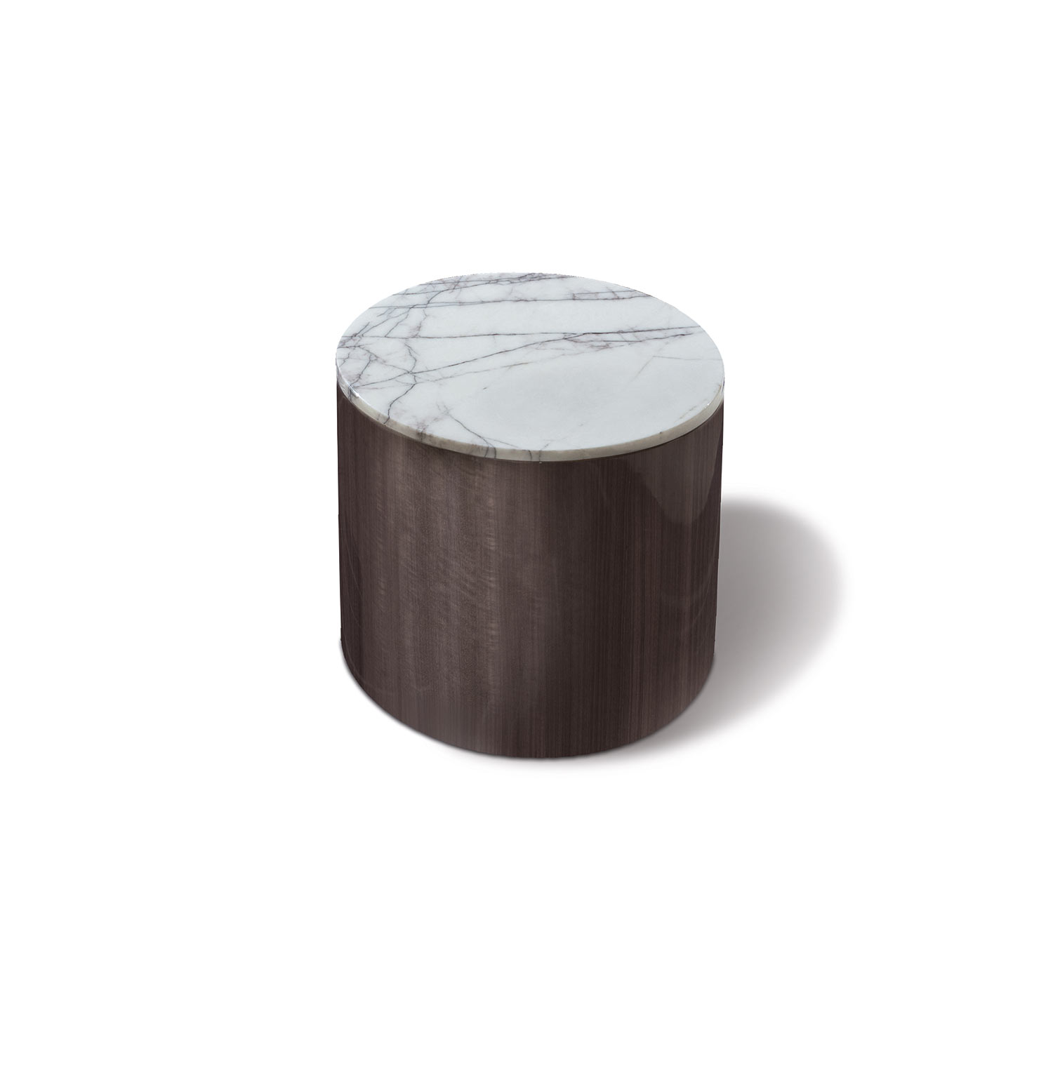圆桌在马科雷红木贴面与高光泽聚酯完成大理石顶部。