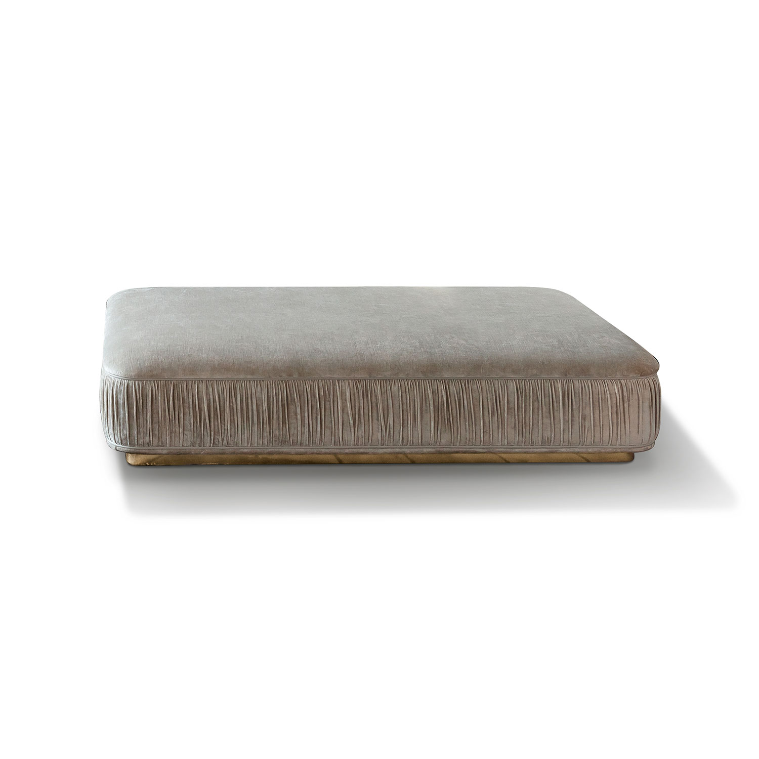 奥斯曼/鸡尾酒桌,配有缝制侧面零件,可提供一级皮革、努布克皮革、蜥蜴印花皮革、天鹅绒或绒面织物。座椅在聚氨酯泡沫包裹在羽绒。以浅金色铬不锈钢为基础。