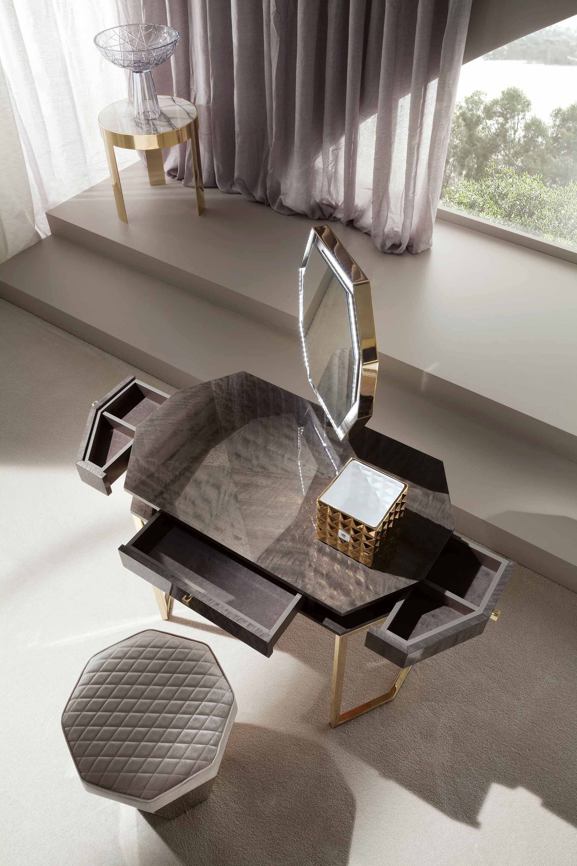 梳妆台的可调节镜面。插入带触摸开关的引导灯。