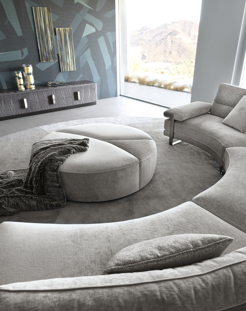 圆形脚凳可在一级皮革,核弹头皮革,蜥蜴印花皮革,天鹅绒或绒面织物。座椅在聚氨酯泡沫包裹在羽绒的特殊缝合。中心部分在缝制完成中实现。基地在缎黑镍不锈钢。