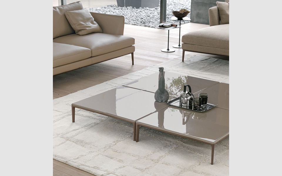 具有多种用途的波焦咖啡桌,有两种形状可供选择:方形和矩形。顶部的宽敞表面在热处理橡木的段或大理石。