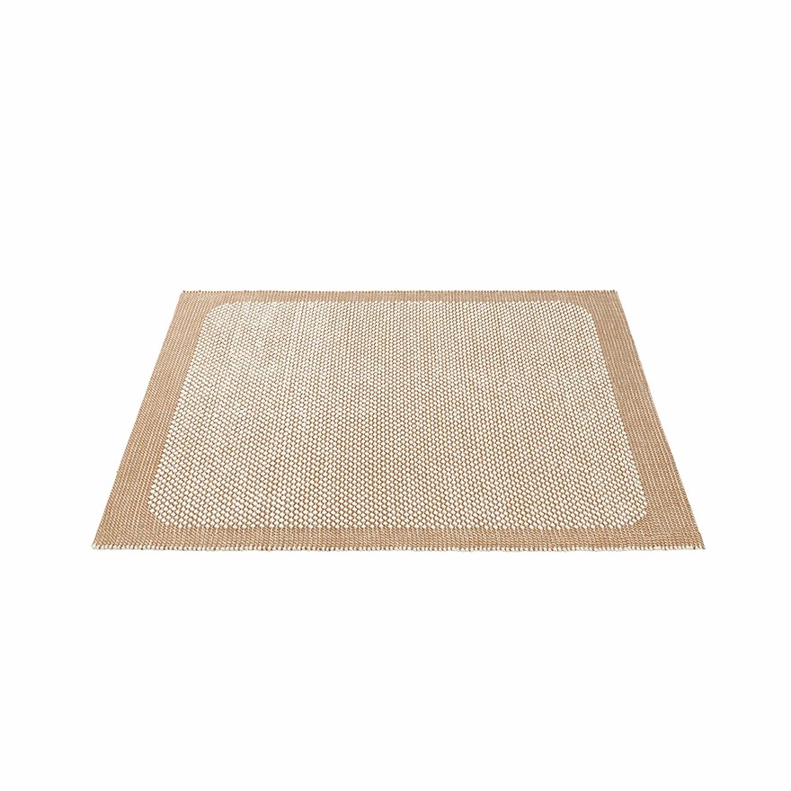 卵石地毯的灵感来自于走过鹅卵石海滩的感觉。卵石地毯具有手工编织结构,在冷却黄麻纱中将其柔软的羊毛环与坚固的帆布底座进行对比。