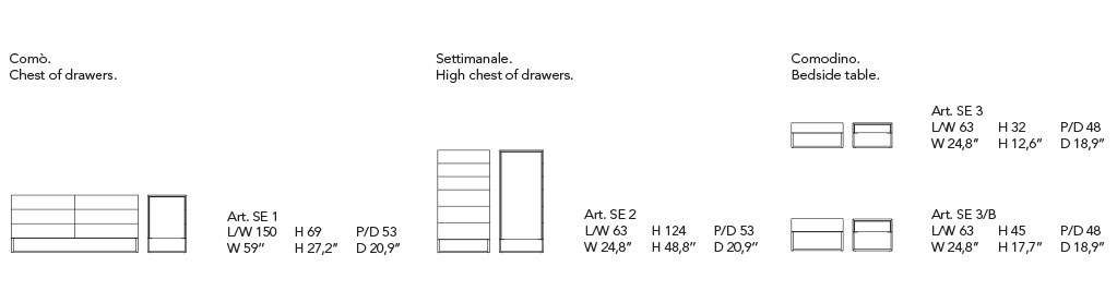 Edo 系列以其紧凑的设计和强烈的极简主义风格脱颖而出。底座提升家具并减轻其亮化:高胸抽屉、抽屉箱和床头柜表达线性和实用性的本质。
