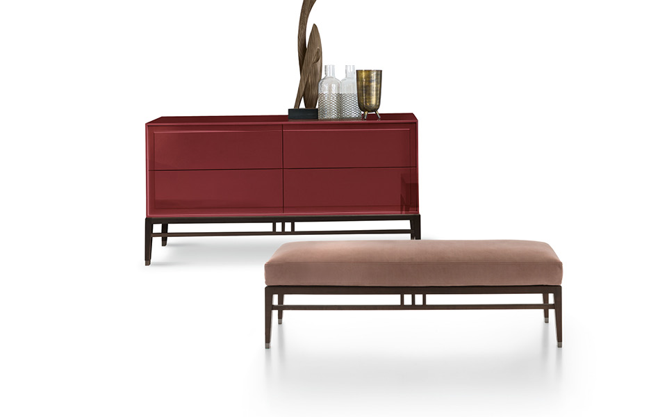 东方装饰艺术的重新发现,使家具具有原始的明亮和闪亮的漆效果。表面的反射是集合的资产,探索材料,使其隐藏的精致曝光。东方卧室补充:大胆的色调和迷人的漆衣在魔法的夜晚, 像一个梦想在你的面前眼睛。