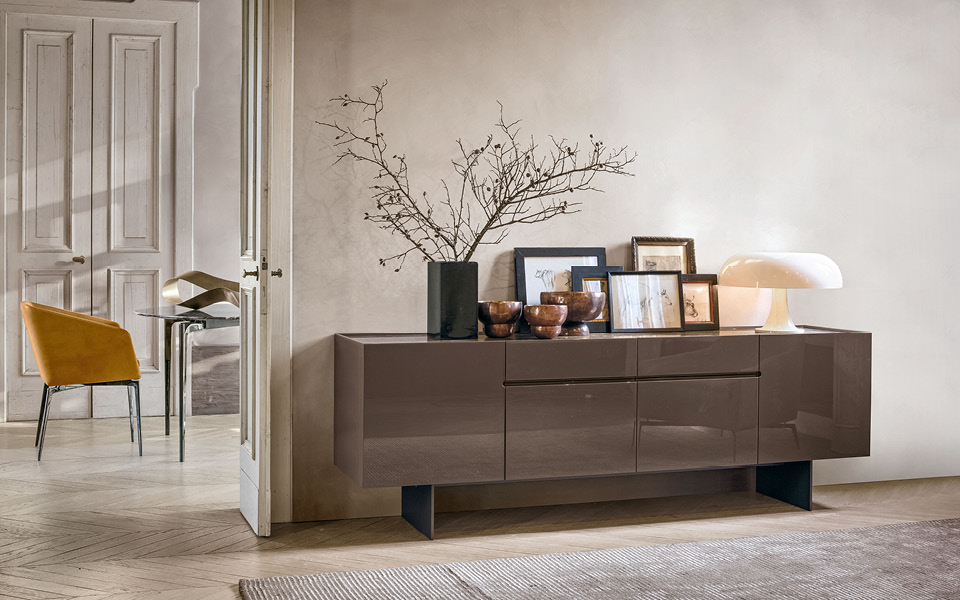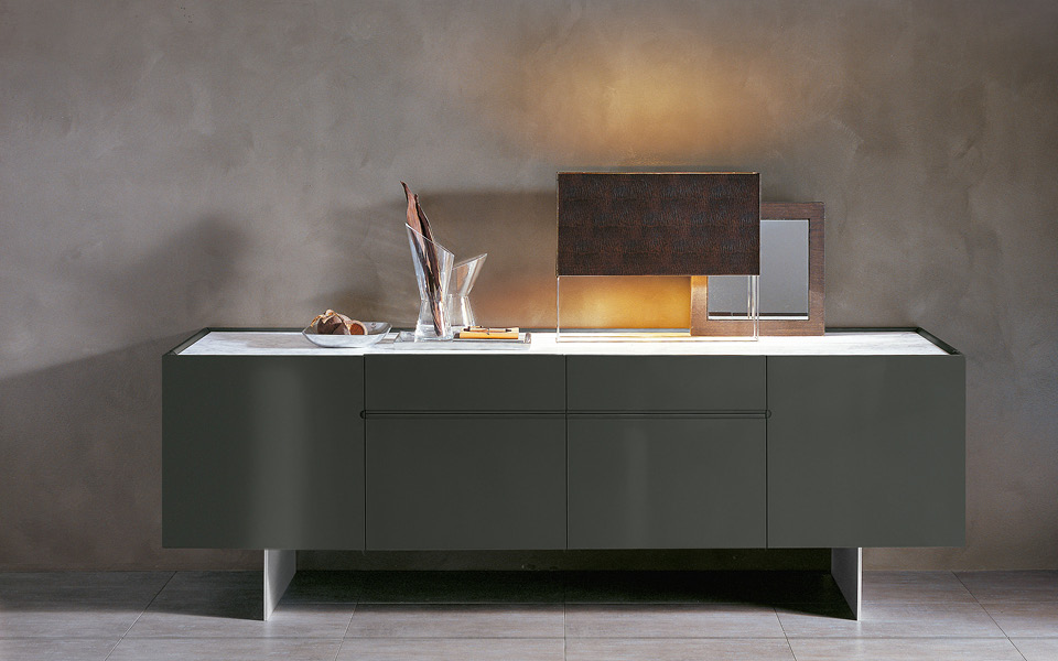 顶级设计的缩影。非常宽敞,有侧门和四个中央抽屉。美丽而实用的解决方案。细节和质量的特点,如集成手柄的特殊处理与漆面产生连续性的影响。