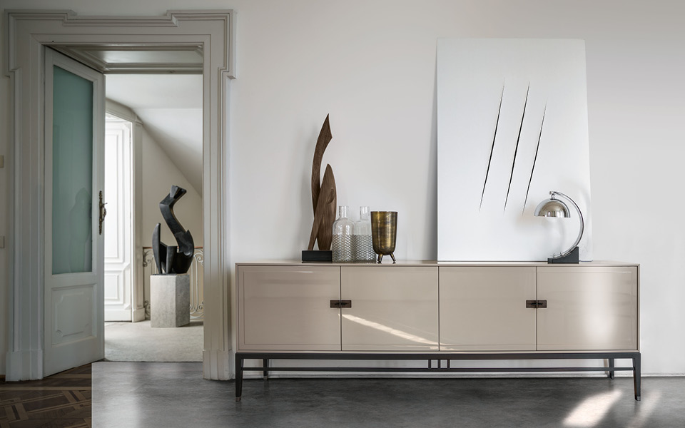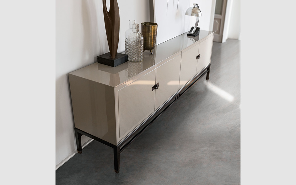极简主义电流线与珍贵材料相结合,创造豪华优雅的效果适应当代家庭。艺术、设计和室内设计融合在东方餐具 柜。东方装饰艺术的重新发现,使家具成为原创明亮和闪亮的漆效果。表面的反射和金属的光芒手柄是一个集合的资产,探索材料,使其隐藏细化到光。