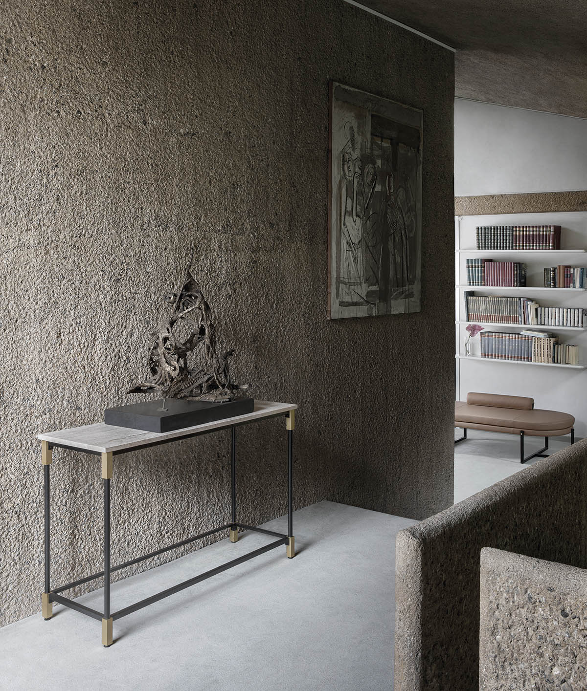 匹配项目的特点是黄铜接头,将结构与货架接合,成为珍贵的装饰元素。可堆叠系统允许创建相同的元素,小桌子和书柜的各种高度,控制台和表。