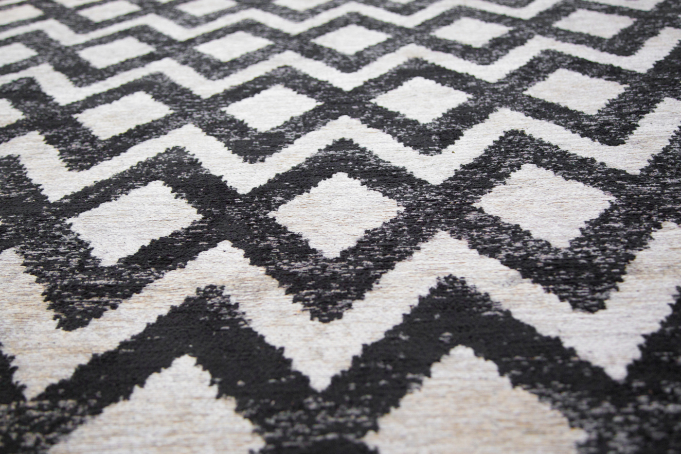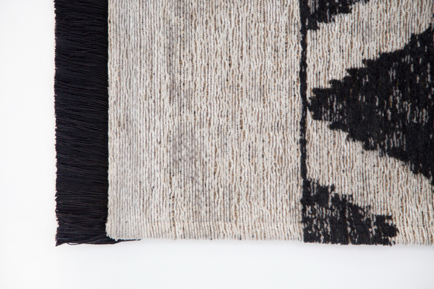 Giotto是一款工业纱线地毯,黑白相间的菱形图案,并饰有流苏.