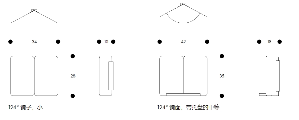 集合中的每面镜子都有两张相距 124 度的脸。因此,镜子反映了周围环境的意外视图,每一面都显示出不同的视角。正视镜子就是根本看不到反射。镜子既是功能性物体,也是设计师丹尼尔·瑞巴克肯对反射、光线和图像的俏皮沉思。124° 反射镜可固定在任何垂直表面或自由站立在水平表面上。124° 镜子设计简单典雅,有三种不同尺寸可供选择,包括一个带有集成木架的版本。