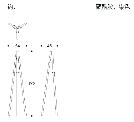 基拉大衣架由三条木腿和标志性的基拉楔子组成,简单而坚固。灵感来自设计师丹尼尔·瑞巴克肯用来悬挂外套的相机三脚架,它有一个低重心,可以容纳严重的重量,而不会翻倒。与生产线上的所有部件一样,其结构也变得透明:楔形金属接头已故意可见,与实心灰腿形成光滑的粉末涂层对比。高大的衣架坚固而优雅,即使在最小的房间,也提供夹克、包和其他物品的实用存储空间。