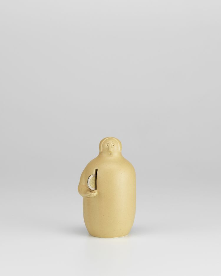 这家陶瓷小猪银行的灵感来自芬兰的古老传统,即在教堂外放置一个穷人的木制雕像,为穷人募捐。对于公司来说,Pauper 让人想起卡莫斯,或极地之夜,一年中最黑暗、最冷的时候,弱势群体最需要的时候。保珀钱币收藏家属于一个由公司为阿尔泰克的FIN/JPN友谊收藏而创作的七件手工陶瓷物品的家庭。
