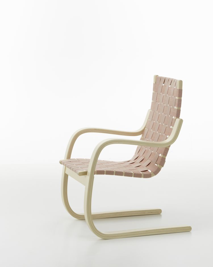 扶手椅 406 将简单的优雅与舒适相结合。由于木材随时间而变化,扶手由一块组成,然后分成两半,确保随着椅子的老化,它保持完全平衡。悬臂木架和亚麻网床座椅提供高度的舒适和放松:天然材料在响应身体的同时产生力量和稳定性。