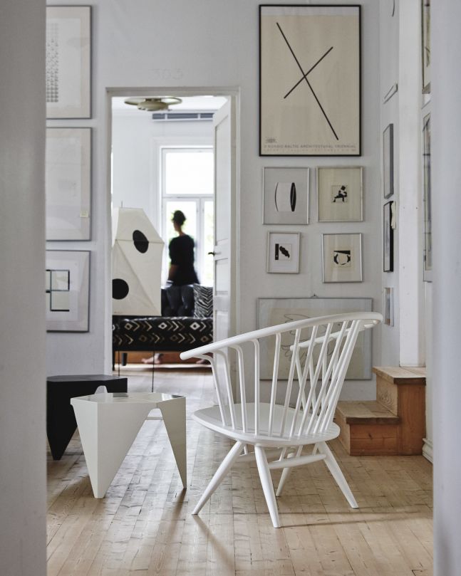 这款优雅的扶手椅具有独特而令人难忘的形状,由伊尔马里·塔皮奥瓦拉设计。扶手椅由实心白木制成,配有传统的辐条背贴在倾斜的弯曲铁轨上,宽大的座椅带有柔和圆润的边缘。它的名字俏皮地指19世纪流行的结构化、带箍状的皮大衣,其形状与椅子相似。