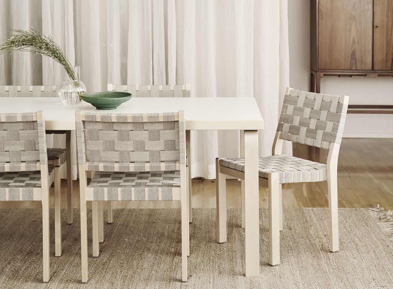 椅子 611 将一个坚固的白木框架与编织织物座椅和靠背相结合。面料织布设计为提供舒适性和实用性,可使座椅格外舒适。椅子 611 可以轻松地重新装潢,这意味着椅子可以具有许多生命周期。作为阿尔瓦·阿尔托最早的现代家具设计之一,611主席自成立以来一直在持续生产。几乎适合任何环境,611号椅子最多有四把椅子。