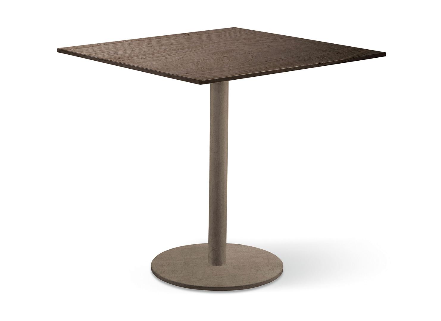 杰克铁棒桌与方形或圆形顶部和中央金属脚。