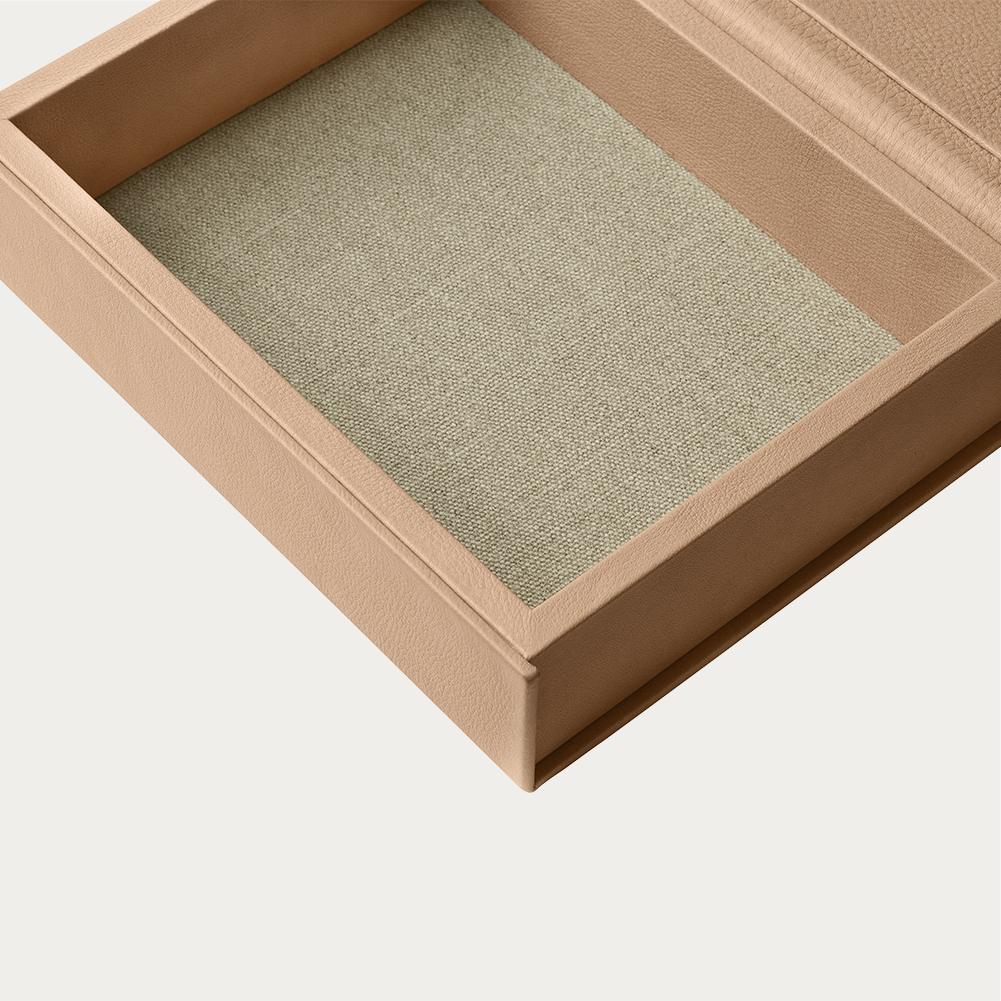 这一系列有吸引力的盒子是由生产鸡蛋™和天鹅™椅子的剩余皮革制成。制作方法基于旧的装订传统,其中装订机熟练地熟练地熟练地熟练地滑雪皮革。皮革将拍打和老化与美丽,和天然亚麻衬里保持内容安全。每个框都有唯一的数字标识。