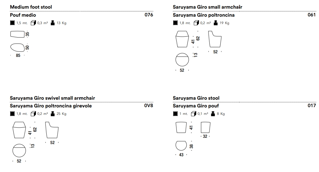 防火冷泡沫与内部木结构的poufs和内部钢结构的扶手椅。旋转扶手椅的彩绘钢底座(代码 0V8)。强烈建议覆盖羊毛布或毛毡。萨鲁山岛系列不可移动。