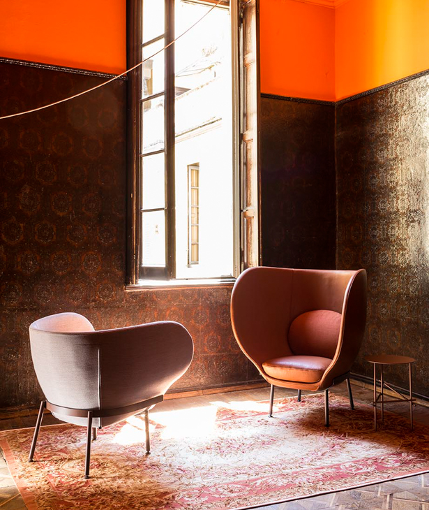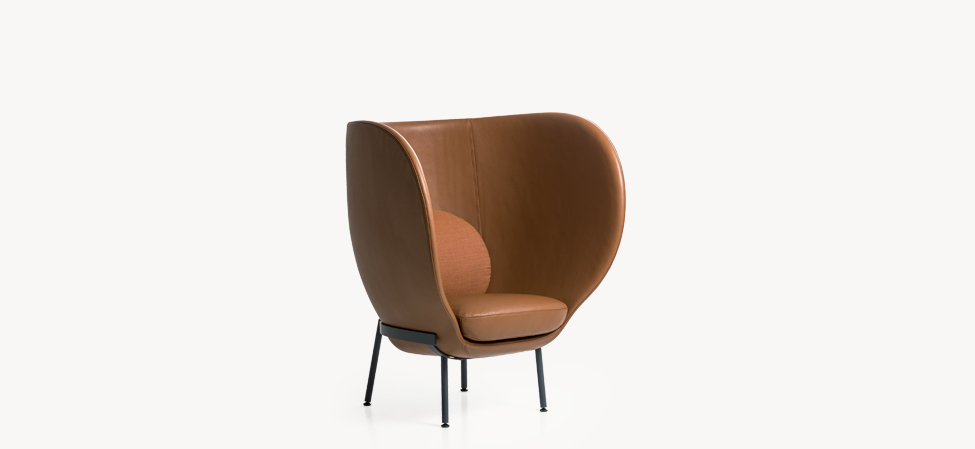 "Armada"是专为开放工作空间和休息区设计的雕塑座椅的集合。扶手椅的膨胀形状像风帆一样从座椅上升起,营造出轻盈和运动的感觉,同时赋予一定的隐私和保密性。形式语言通过薄填充侧和内部柔软、巨大的垫子的组合探索表面和体积的使用,在旅途上工作时提供正确的舒适感。该系列包括一个扶手椅与高或低背部和餐椅在基座基地,完全软垫。