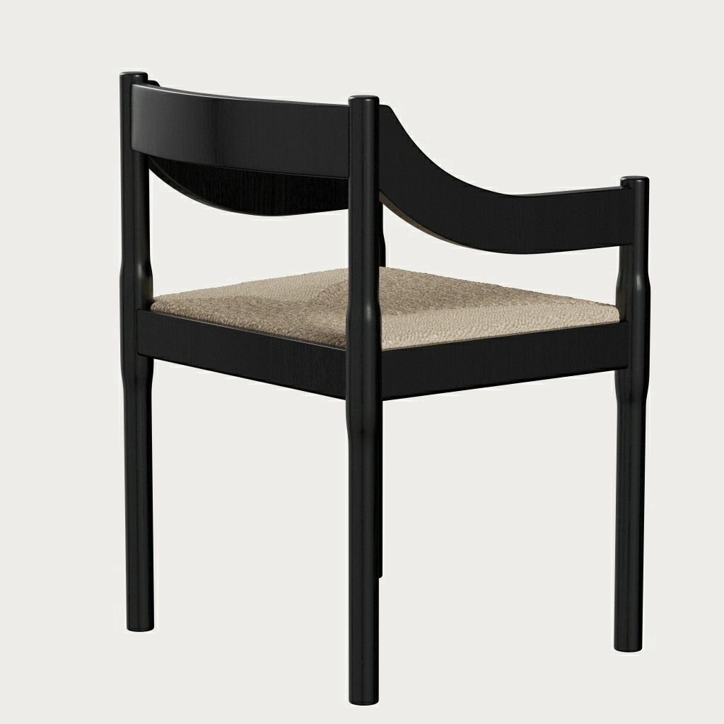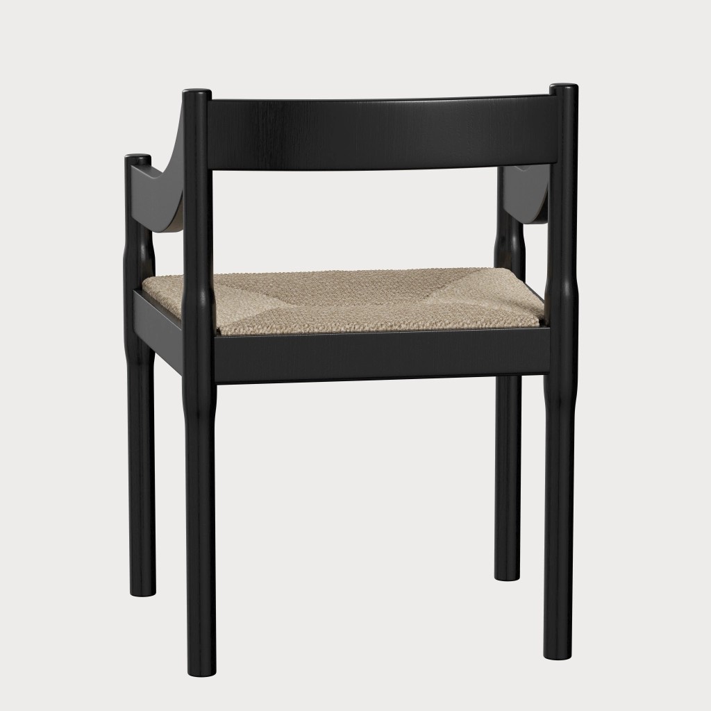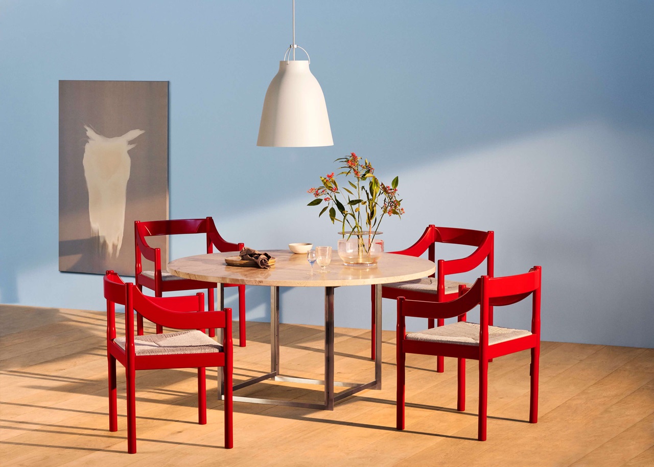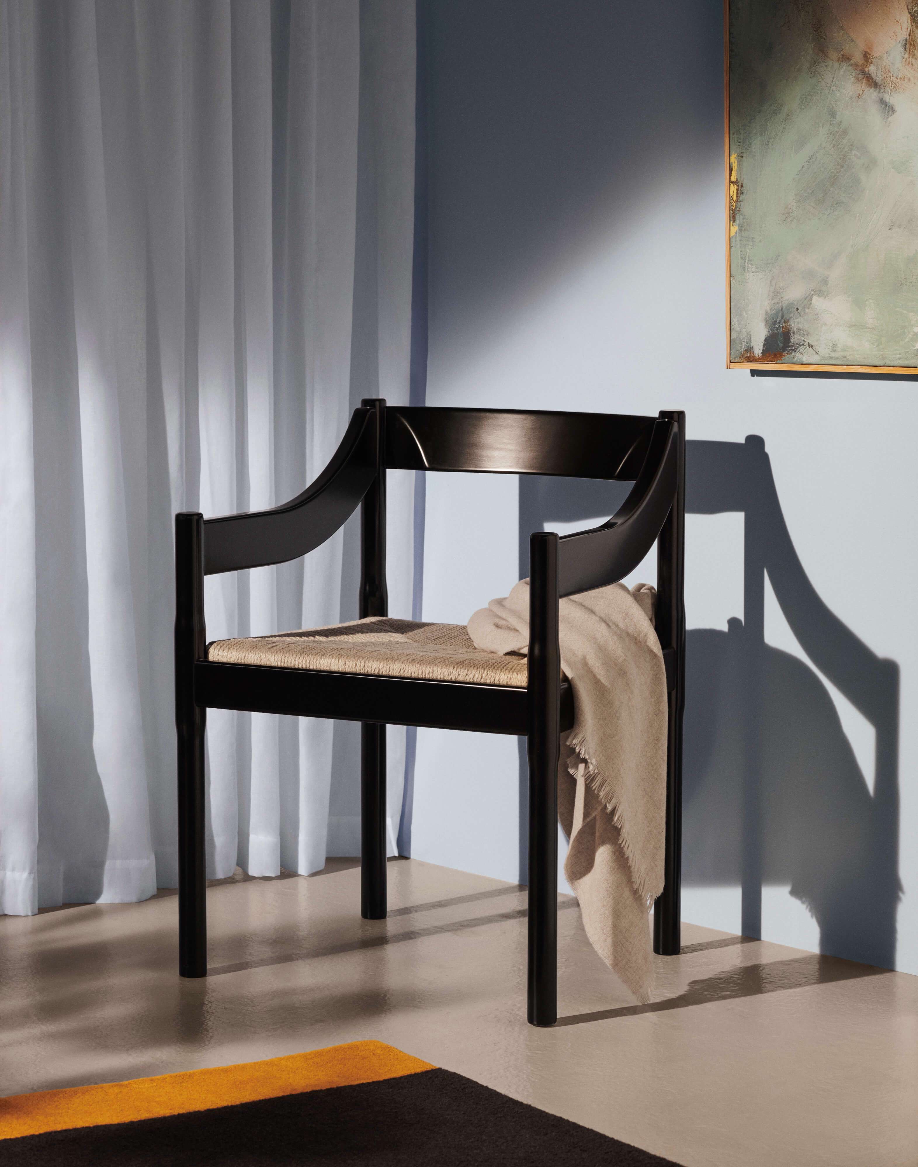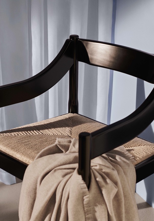 扶手椅是为了纪念维科·马吉斯特雷蒂,他于1959年为意大利的Carimate高尔夫俱乐部设计了原红色Carimate。细节使弗里茨·汉森的这个周年纪念版真正特别。旗线座椅的灵感来自原始的稻草座椅,尊重原始美学,而不会冒与天然稻草相关的有机腐烂的风险。弗里茨·汉森曾用欧洲通用无转基因亚麻作为旗线——110米手工编织,打造出美丽、有机的座椅。座椅高度和靠背设计进行了小的更改,以获得舒适性。椅子有红色和黑色漆,以纪念早期版本的设计。