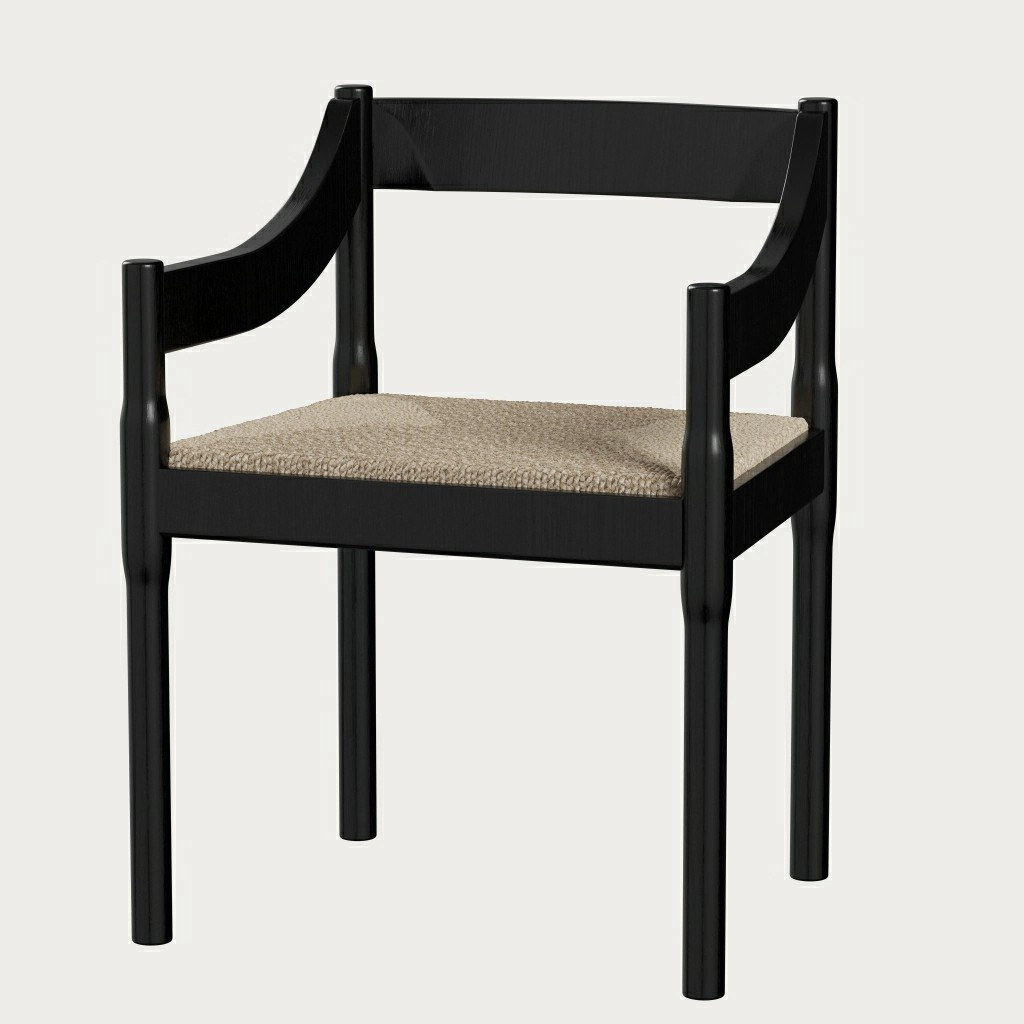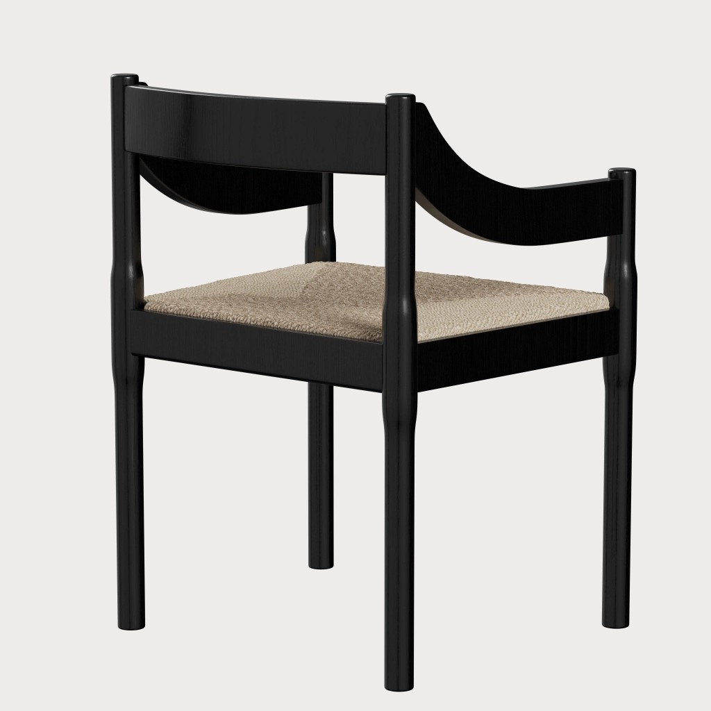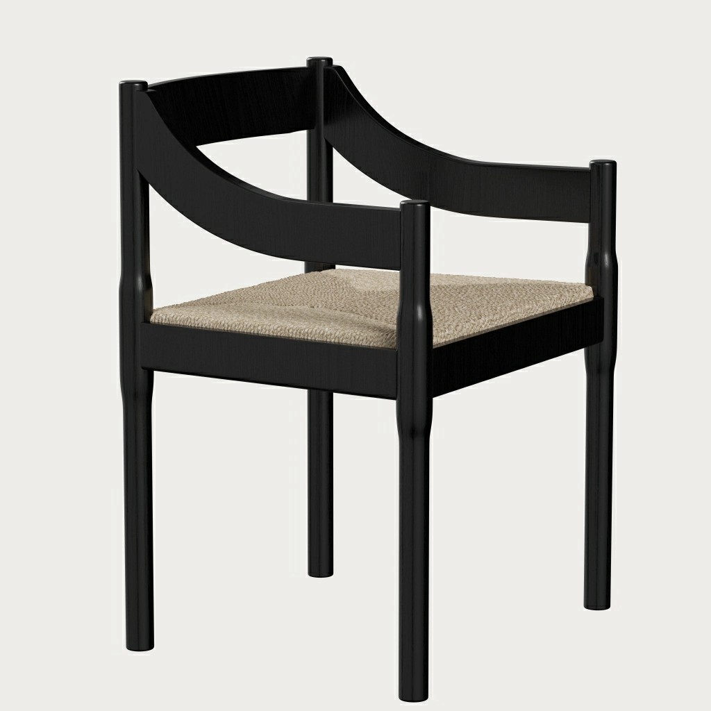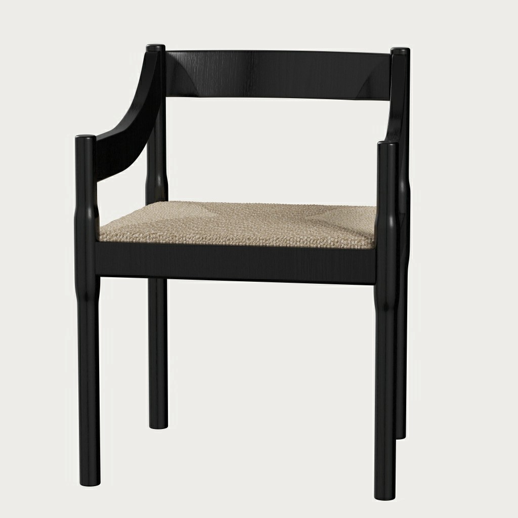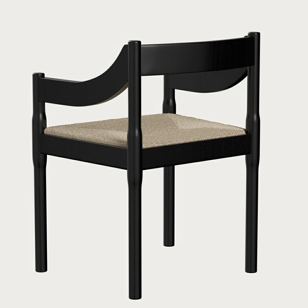 扶手椅是为了纪念维科·马吉斯特雷蒂,他于1959年为意大利的Carimate高尔夫俱乐部设计了原红色Carimate。细节使弗里茨·汉森的这个周年纪念版真正特别。旗线座椅的灵感来自原始的稻草座椅,尊重原始美学,而不会冒与天然稻草相关的有机腐烂的风险。弗里茨·汉森曾用欧洲通用无转基因亚麻作为旗线——110米手工编织,打造出美丽、有机的座椅。座椅高度和靠背设计进行了小的更改,以获得舒适性。椅子有红色和黑色漆,以纪念早期版本的设计。